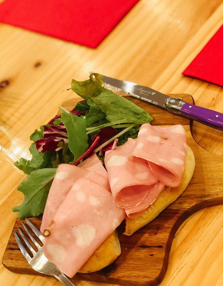 シェフ手作りの焼きたてフォカッチャに、新鮮野菜とモルタデッラをたっぷりと添えた一品![]()