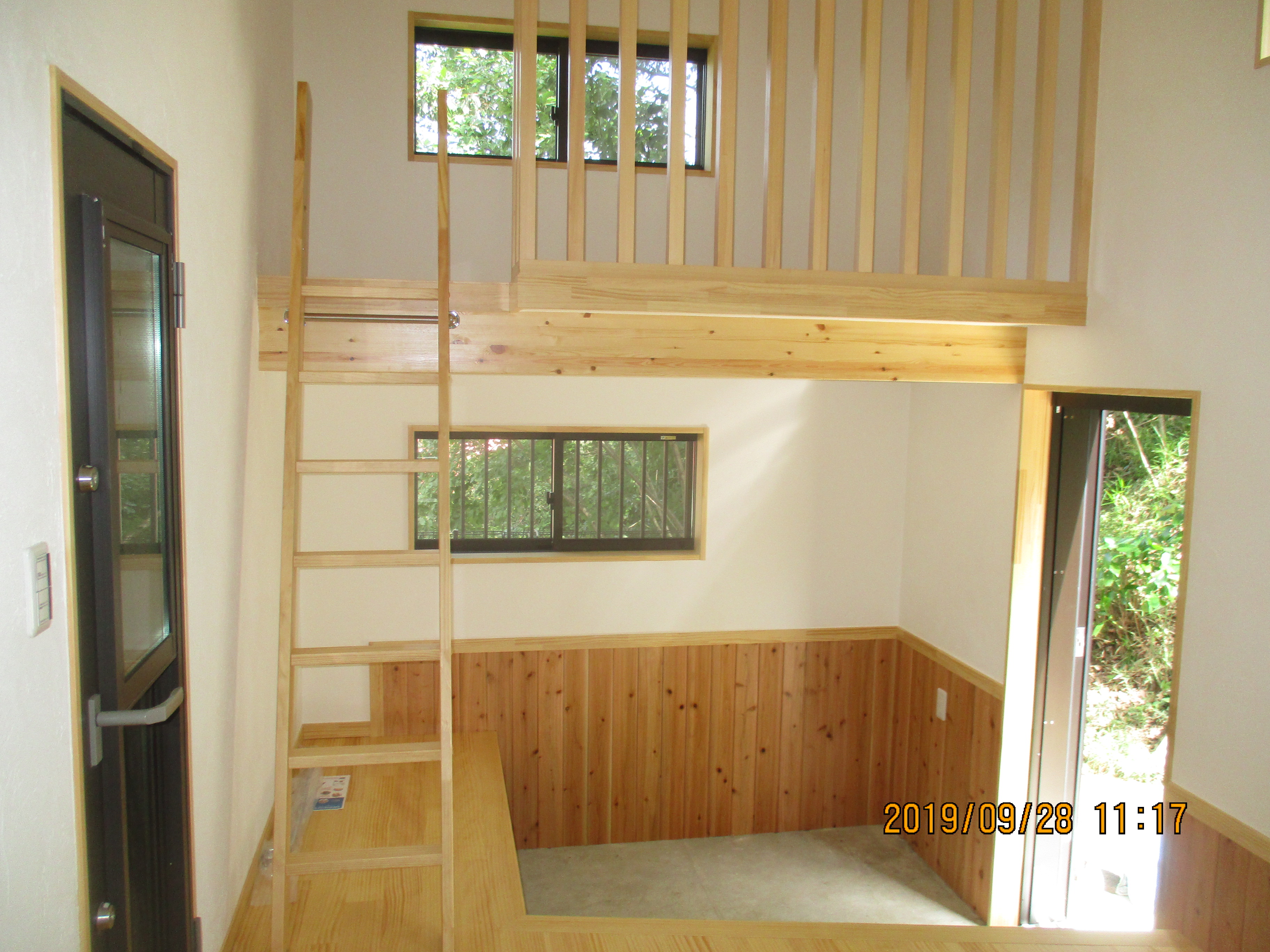 腰高まで杉板を貼りました