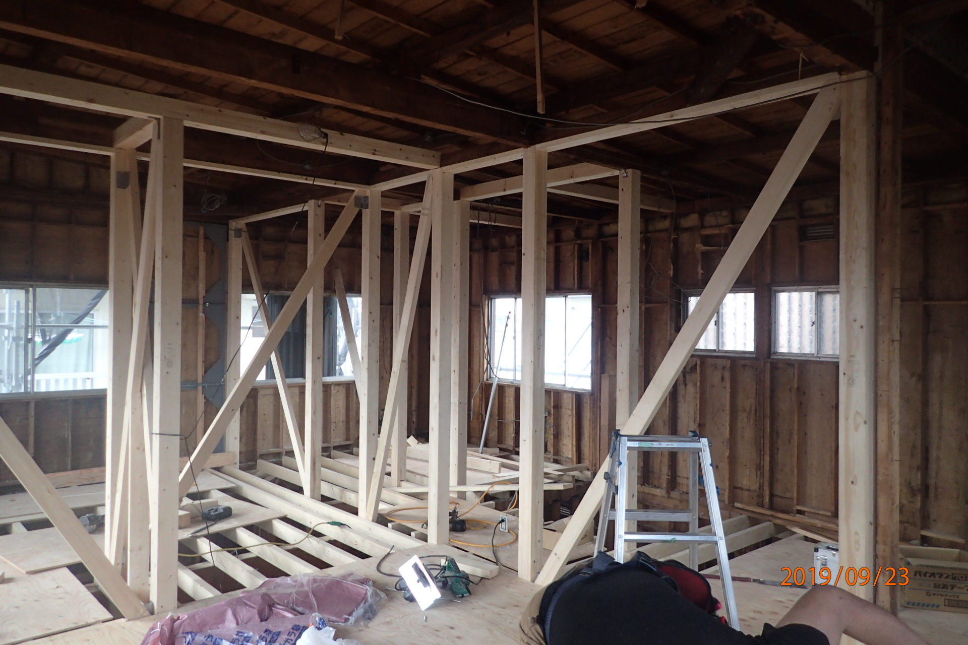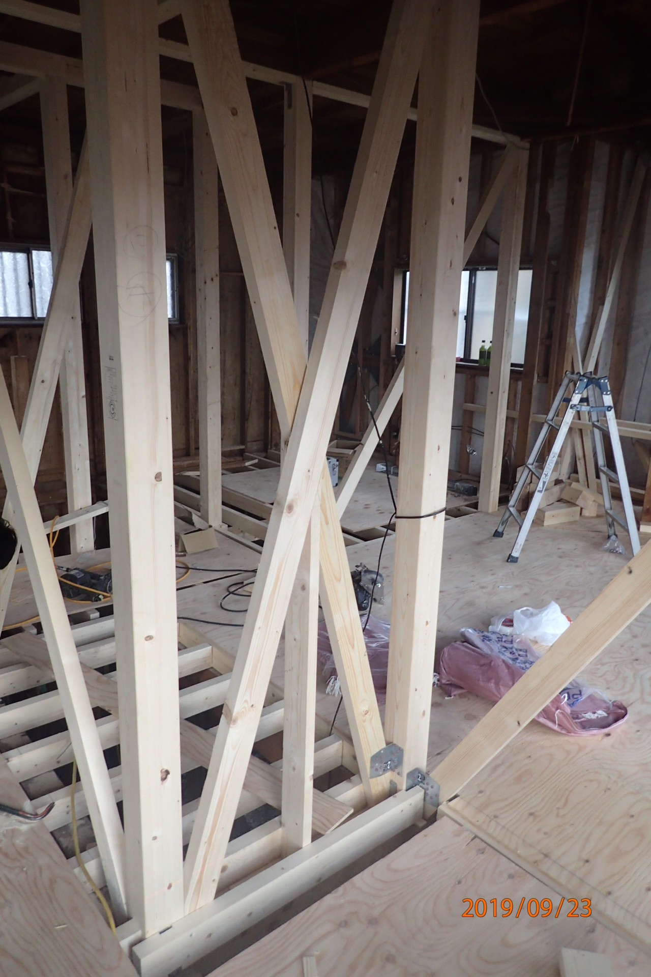 木造軸組みパネル工法で建てられたあまり数の多くないタイプのお家でした。