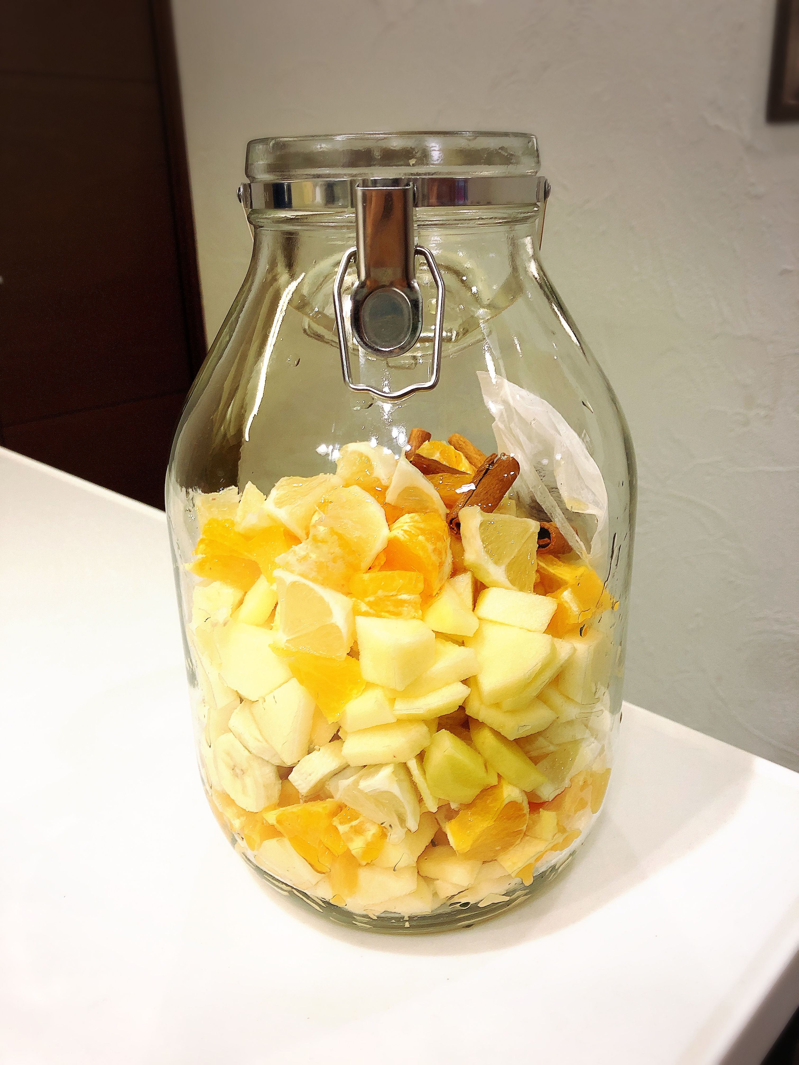 まず沢山のフルーツ(リンゴ・オレンジ・レモン・バナナ等)をカット![]()