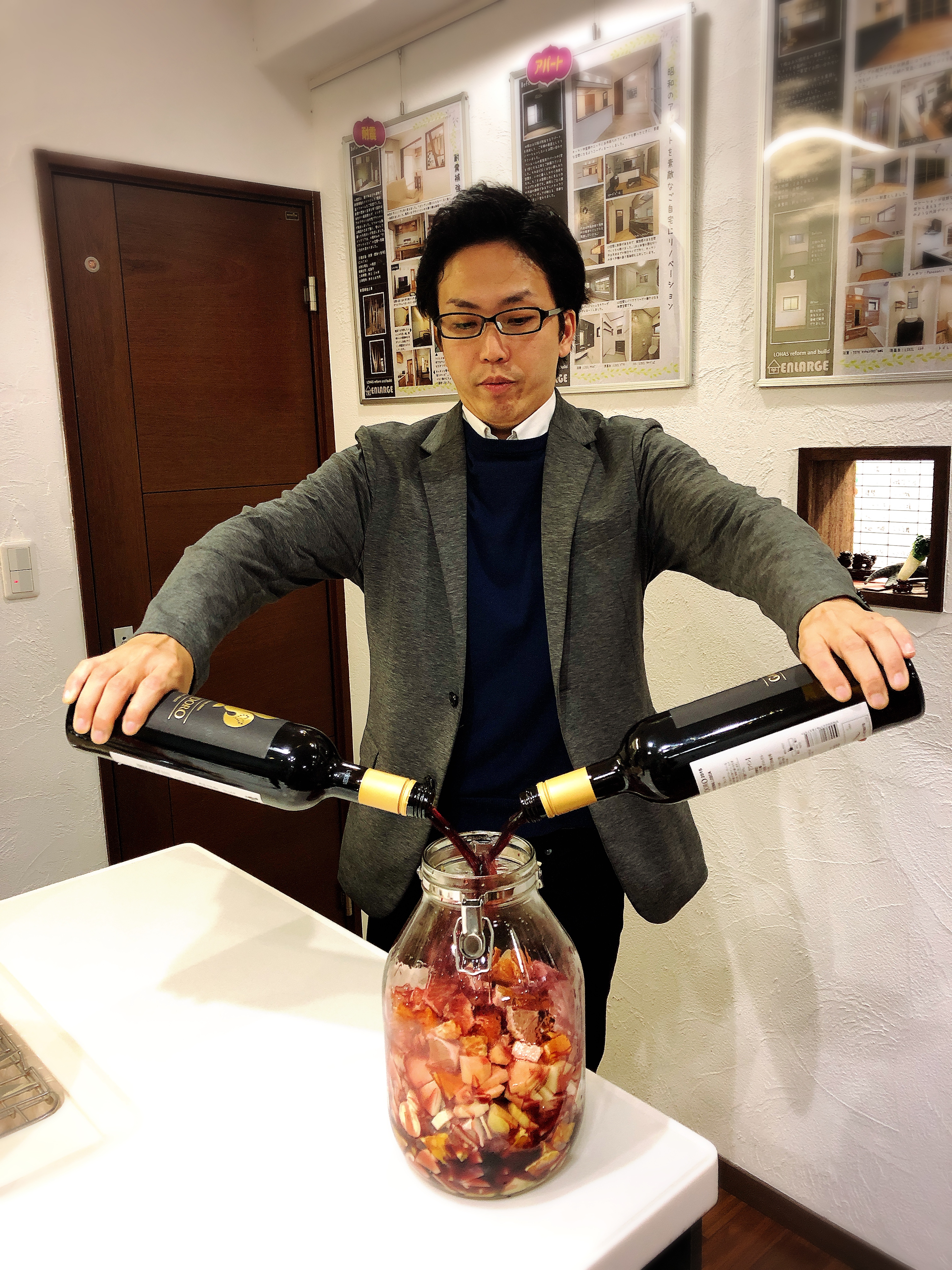 当日販売するホットワインは、1週間フルーツを漬け込んで作るので、