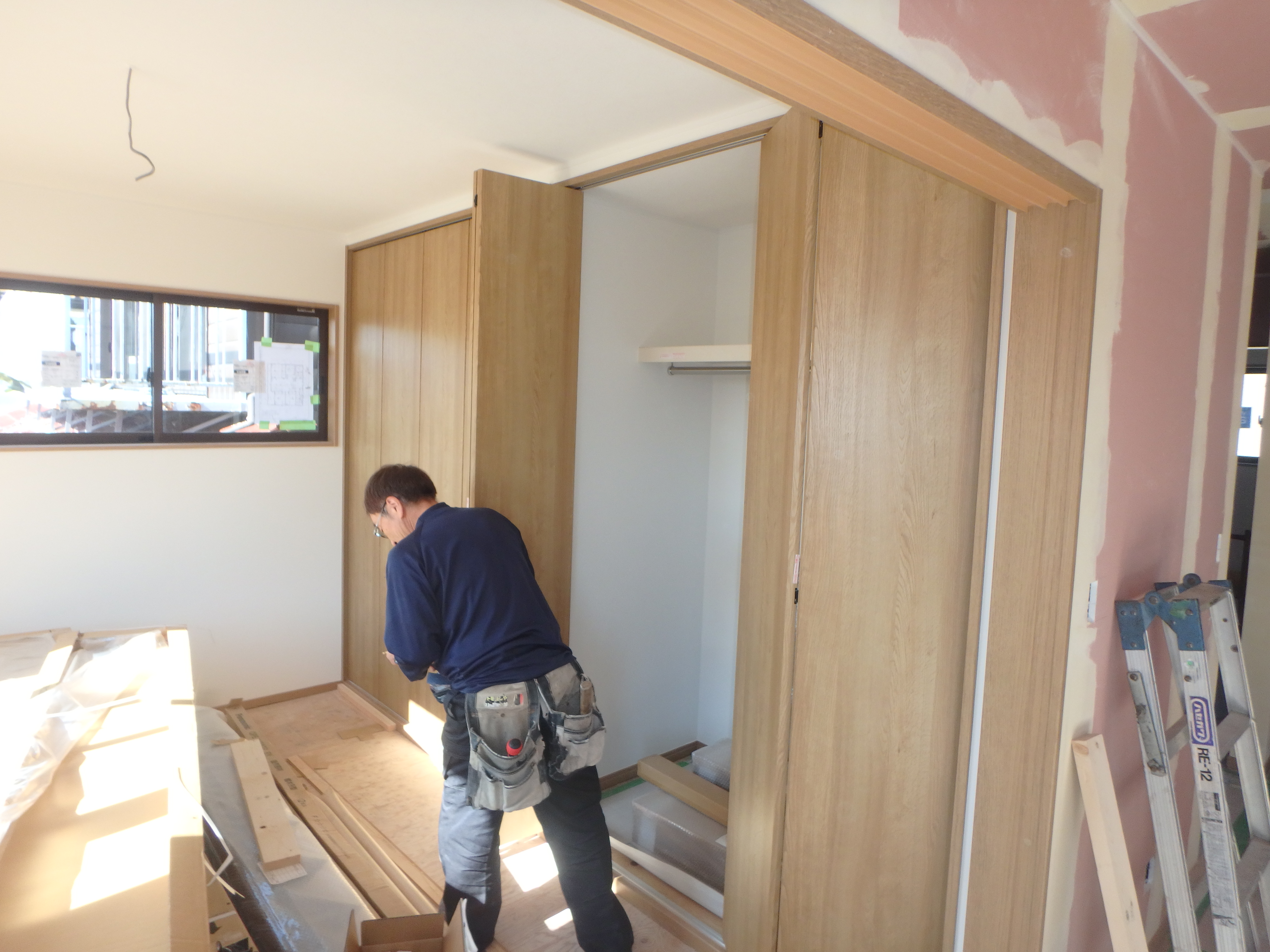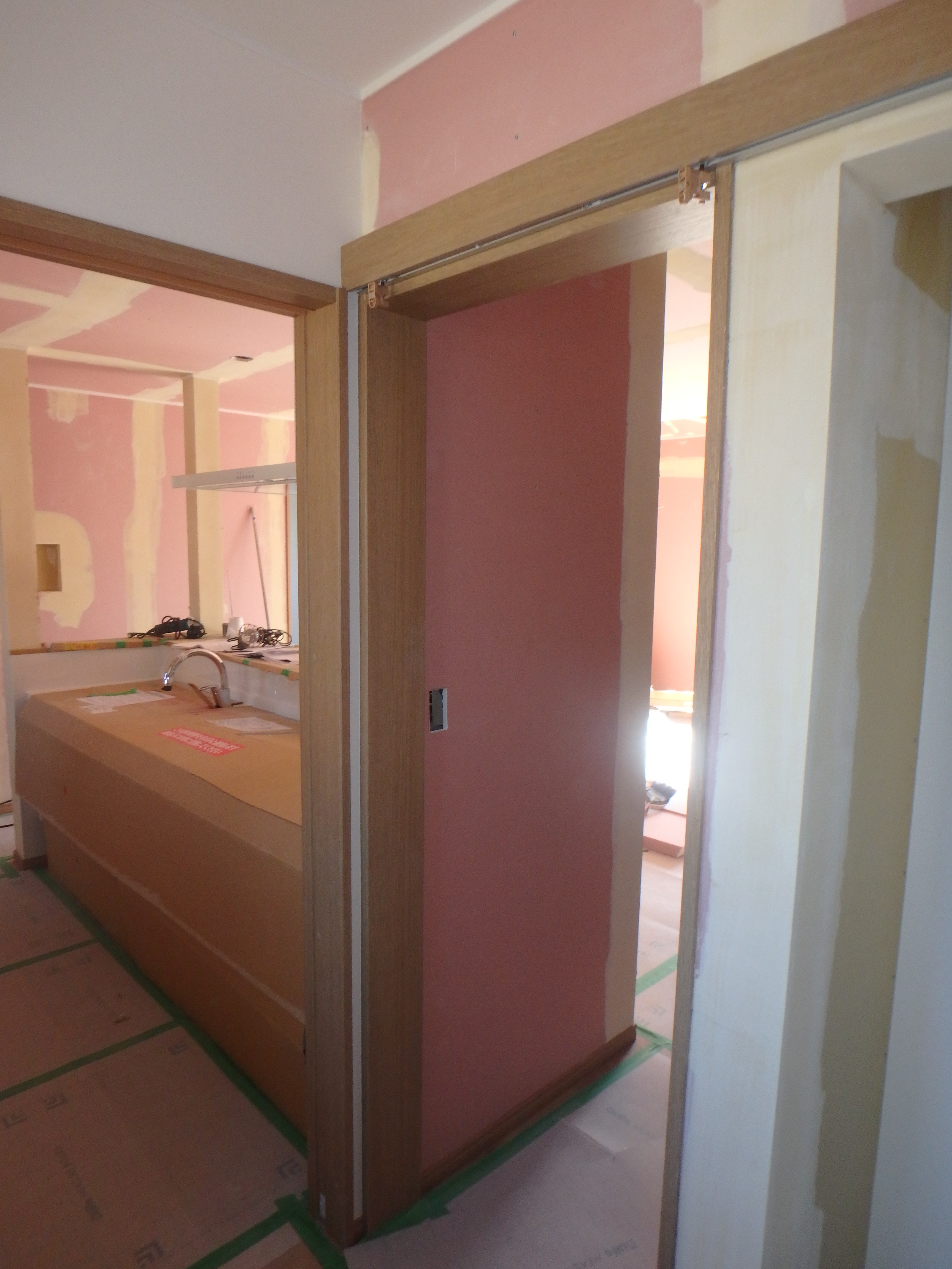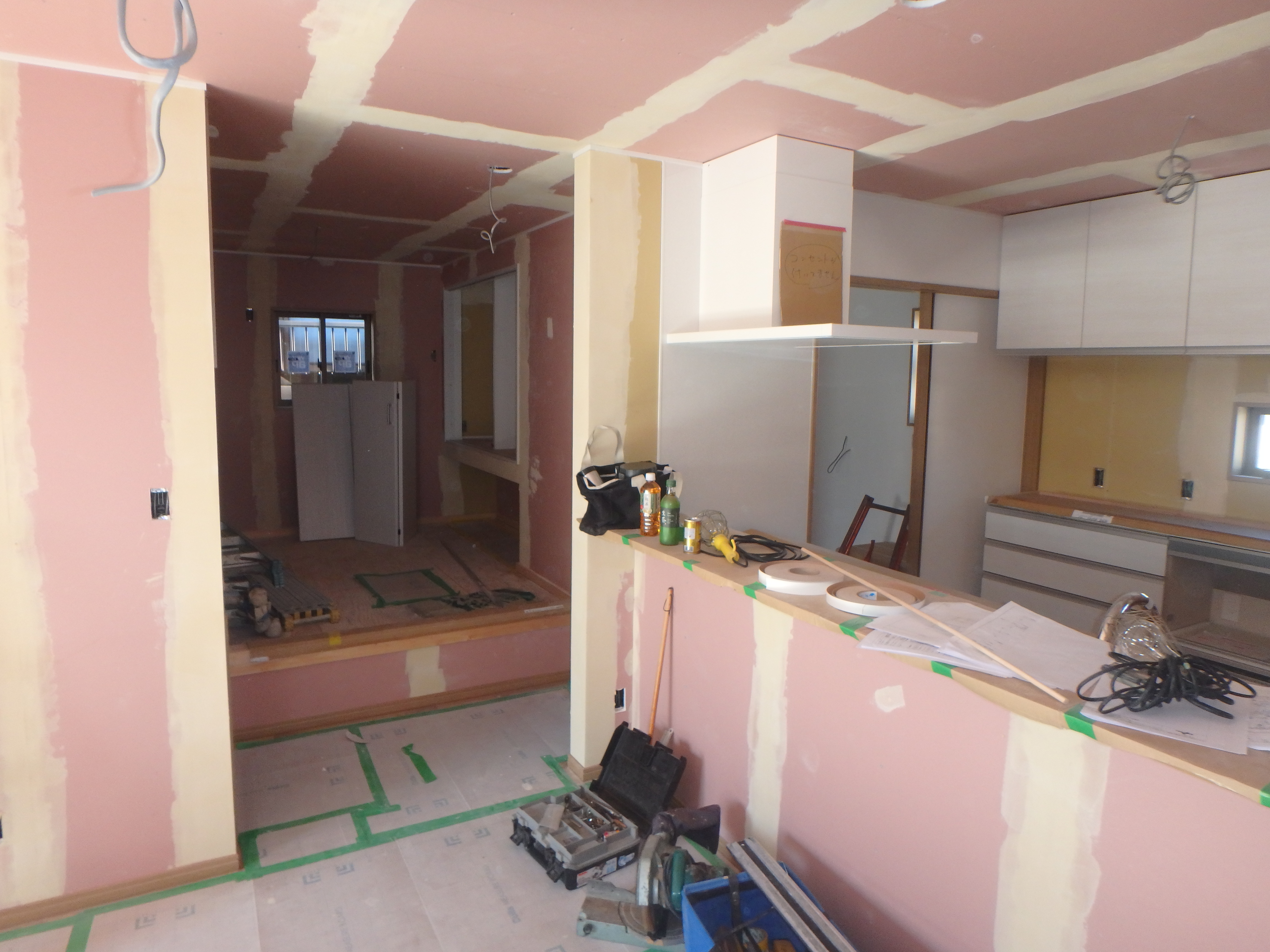 大工さんの工事が終わると、次は左官屋さんが珪藻土の施工に入ります。