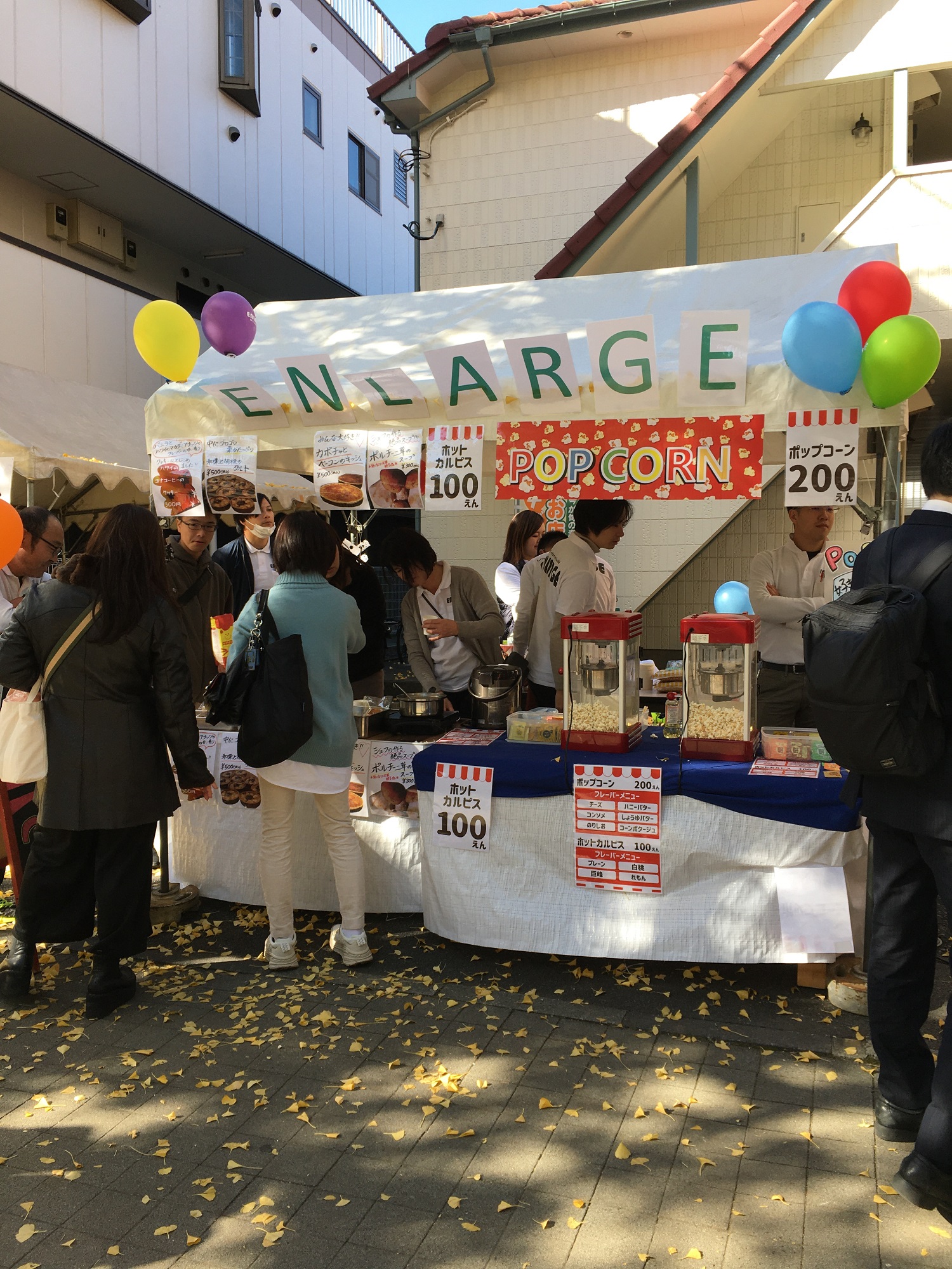 テントでは、ポップコーン・ホットカルピス・カフェエンラージのテイクアウトフードをご用意しております
