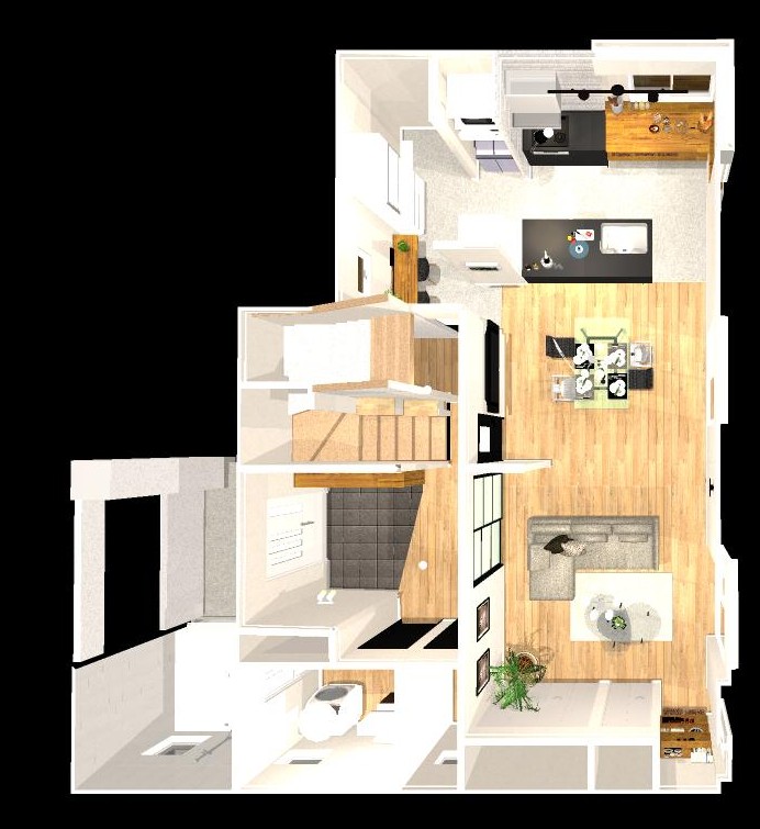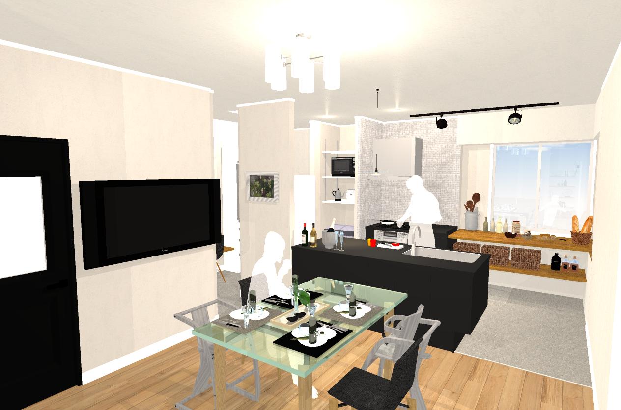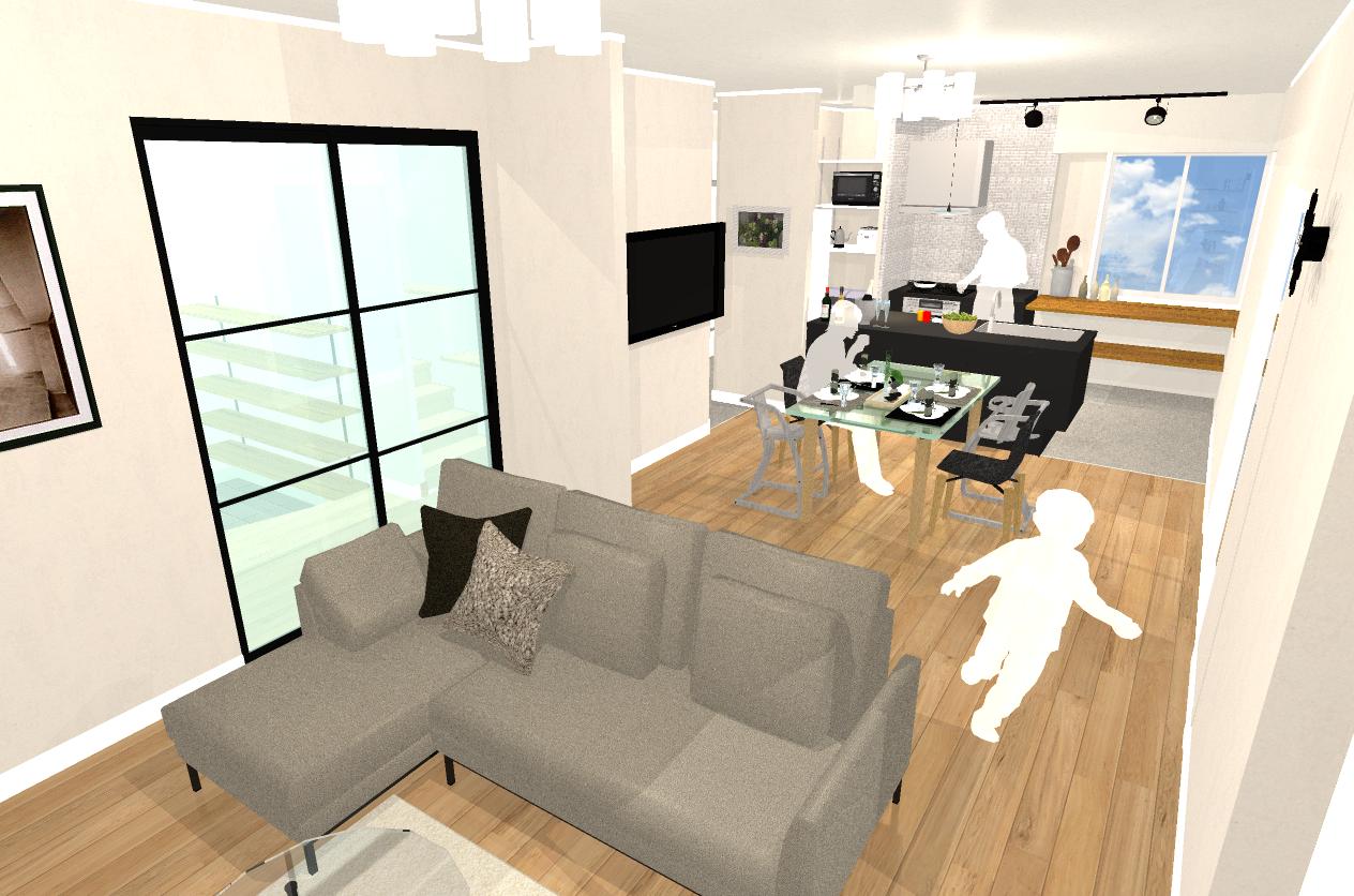 お子様が走り回れる回遊性を持たせた広々LDK間取り変更。