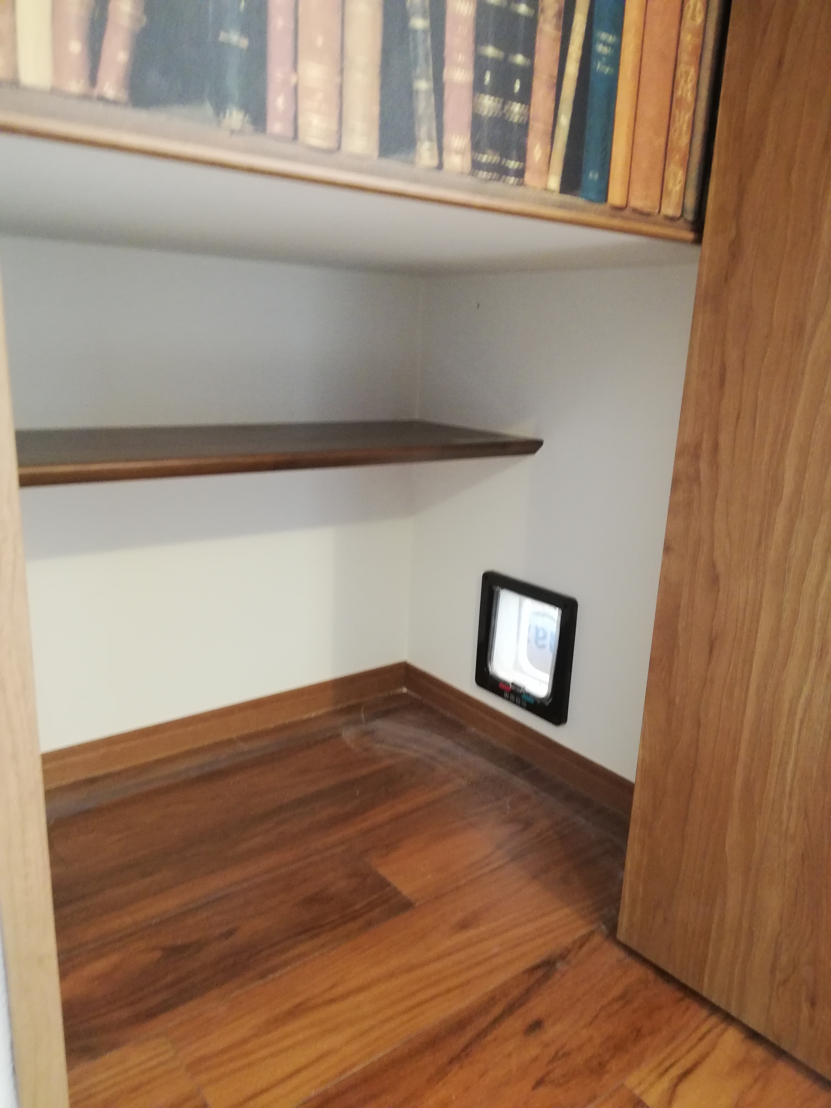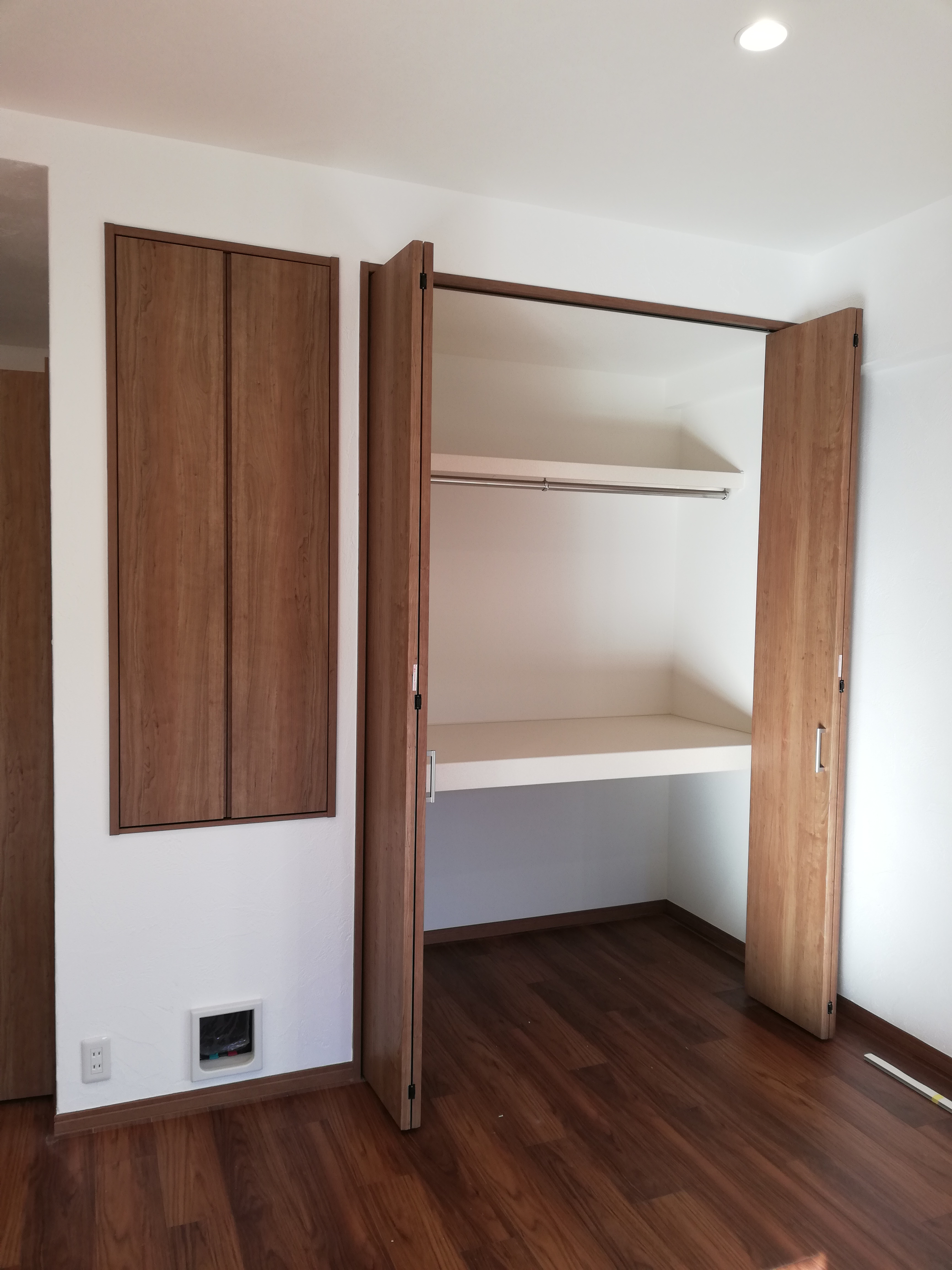くうちゃんのお世話は側面の収納扉を開けてできるよう計画しました。