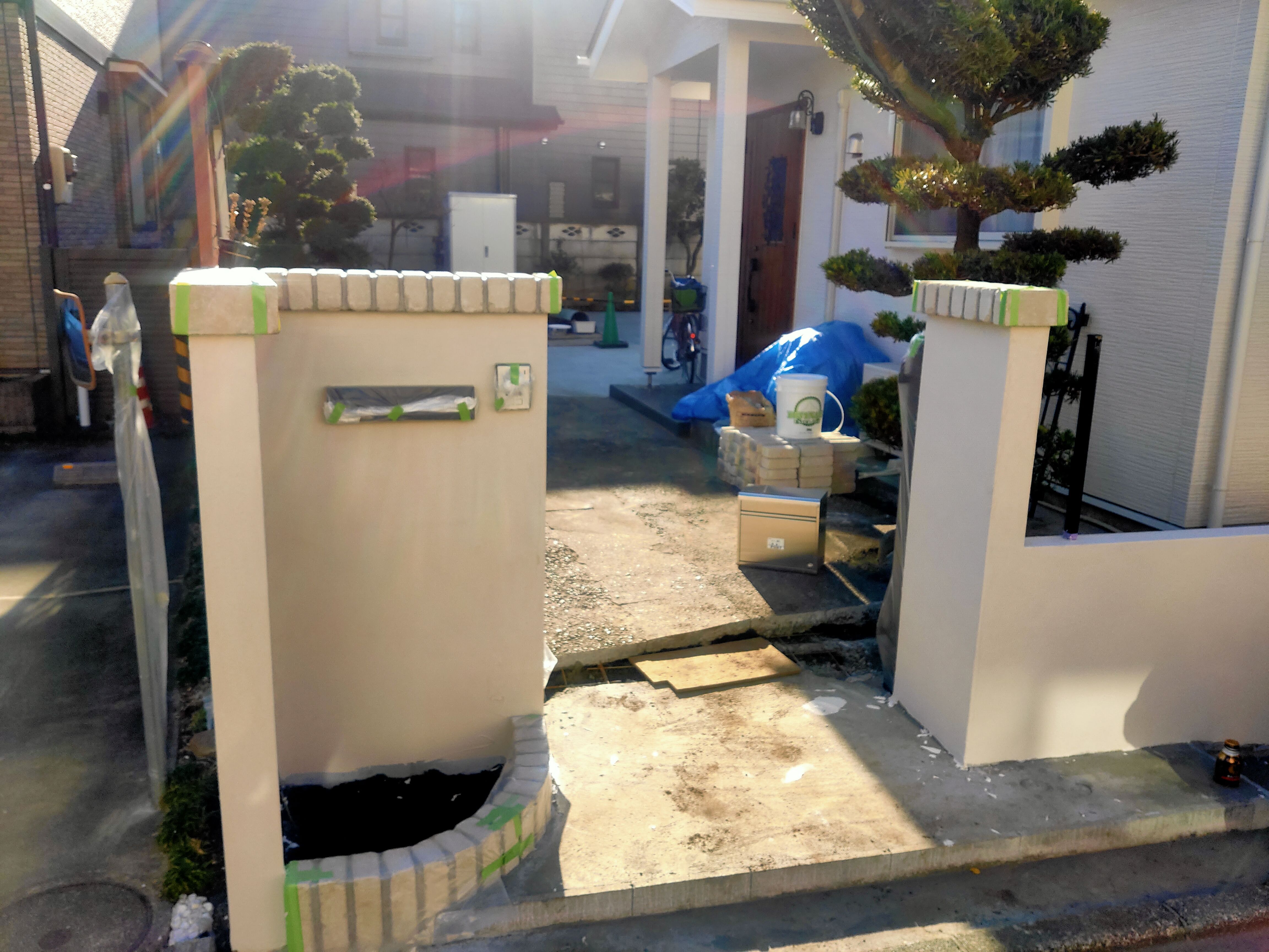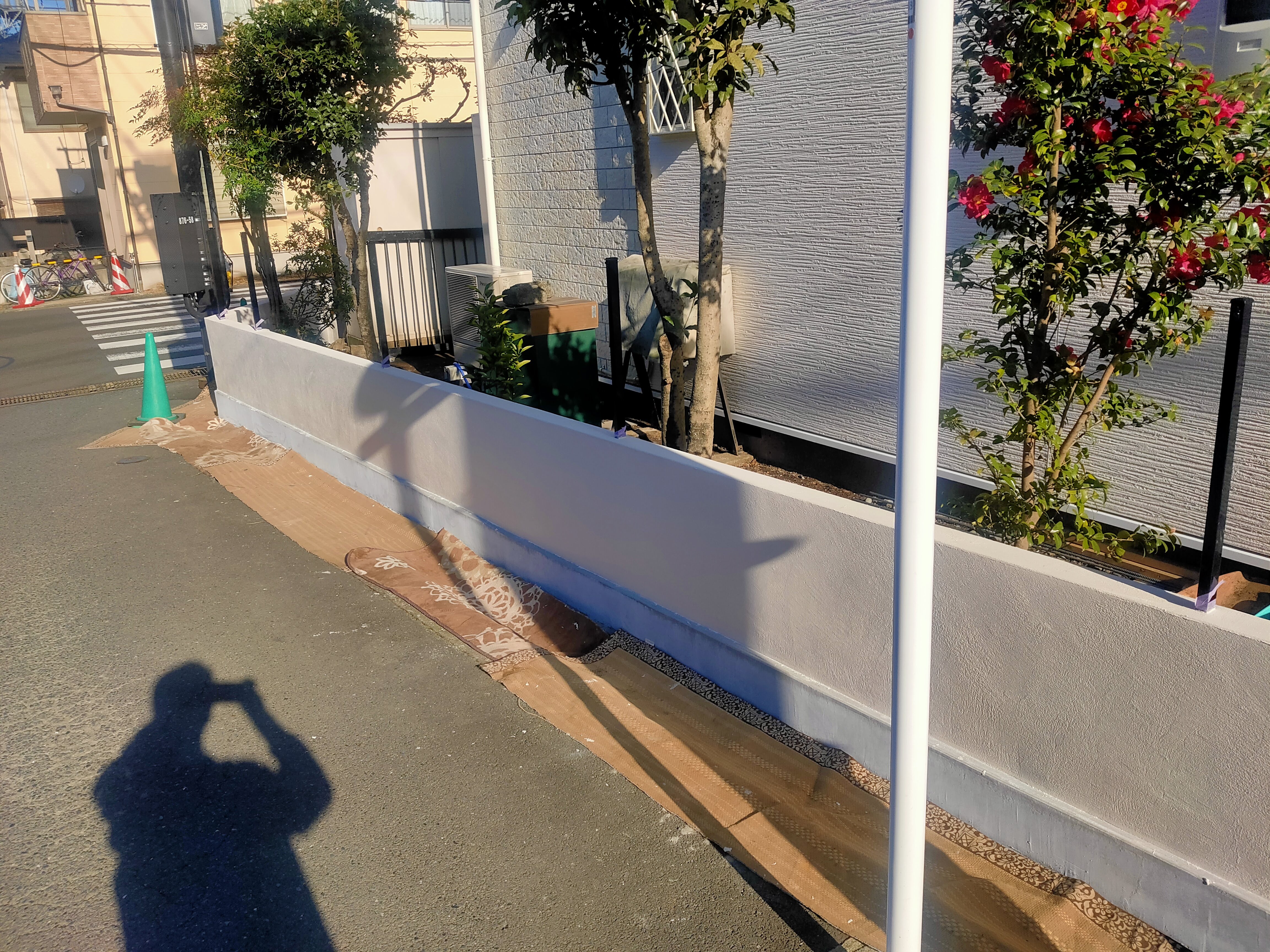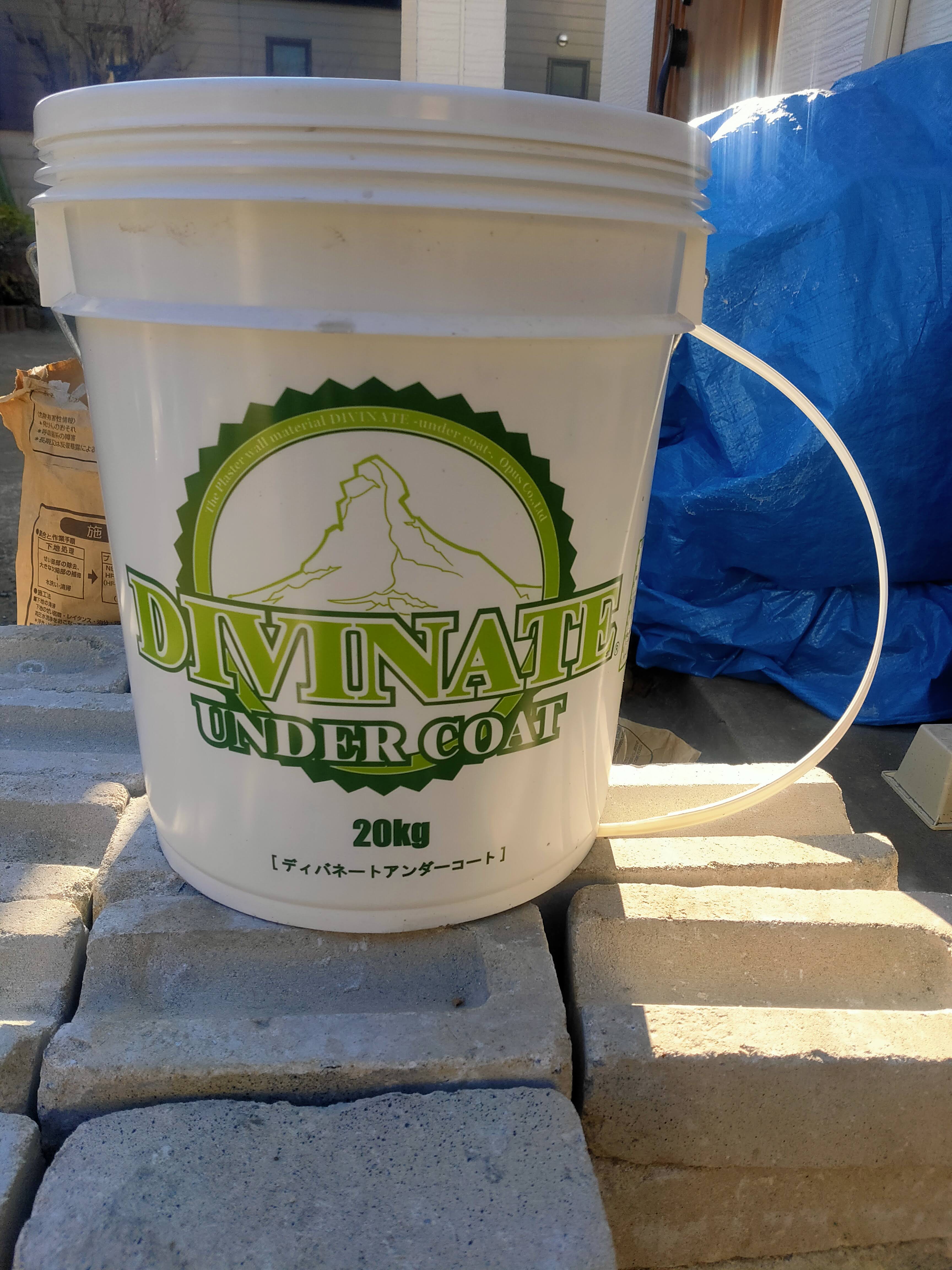 今回はブロック塀に左官で下地を作り、その上にディバネートを塗る工事をしています