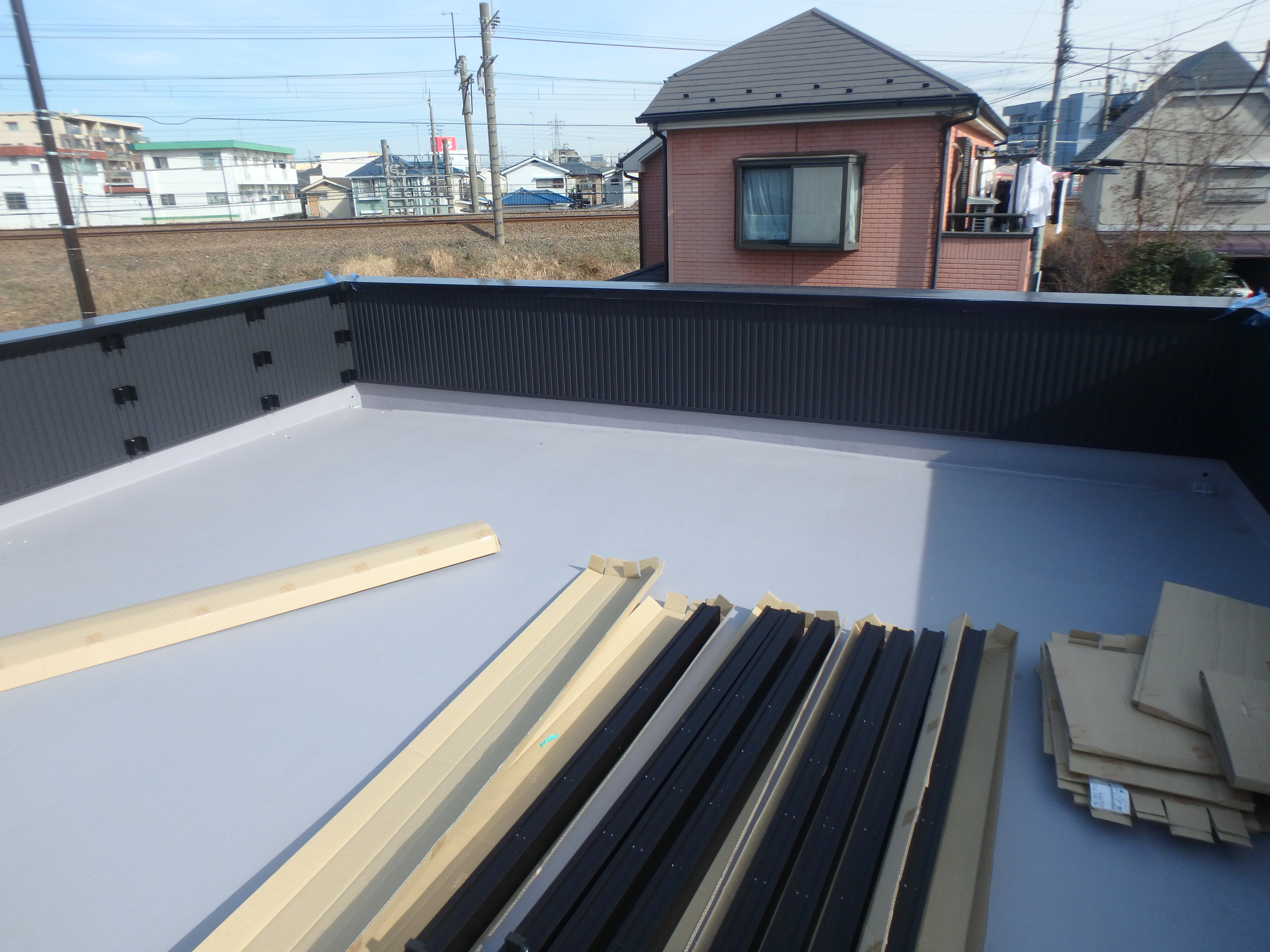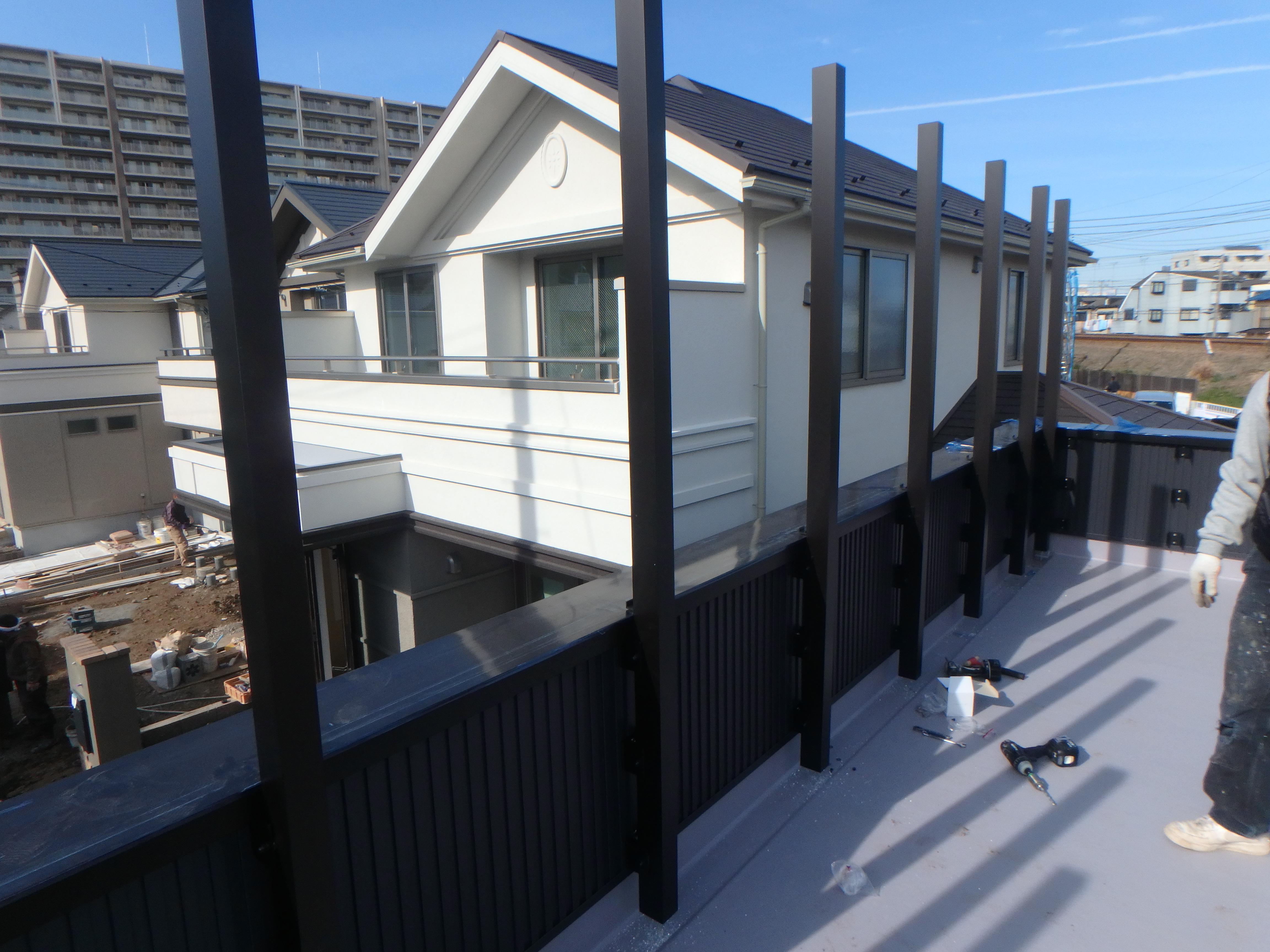 2階を減築してできた広い屋上では、フェンスの工事が進んでいます。