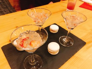 今回はとちおとめと白ワインのゼリー&とちおとめの白いマカロンの2種でした![]()