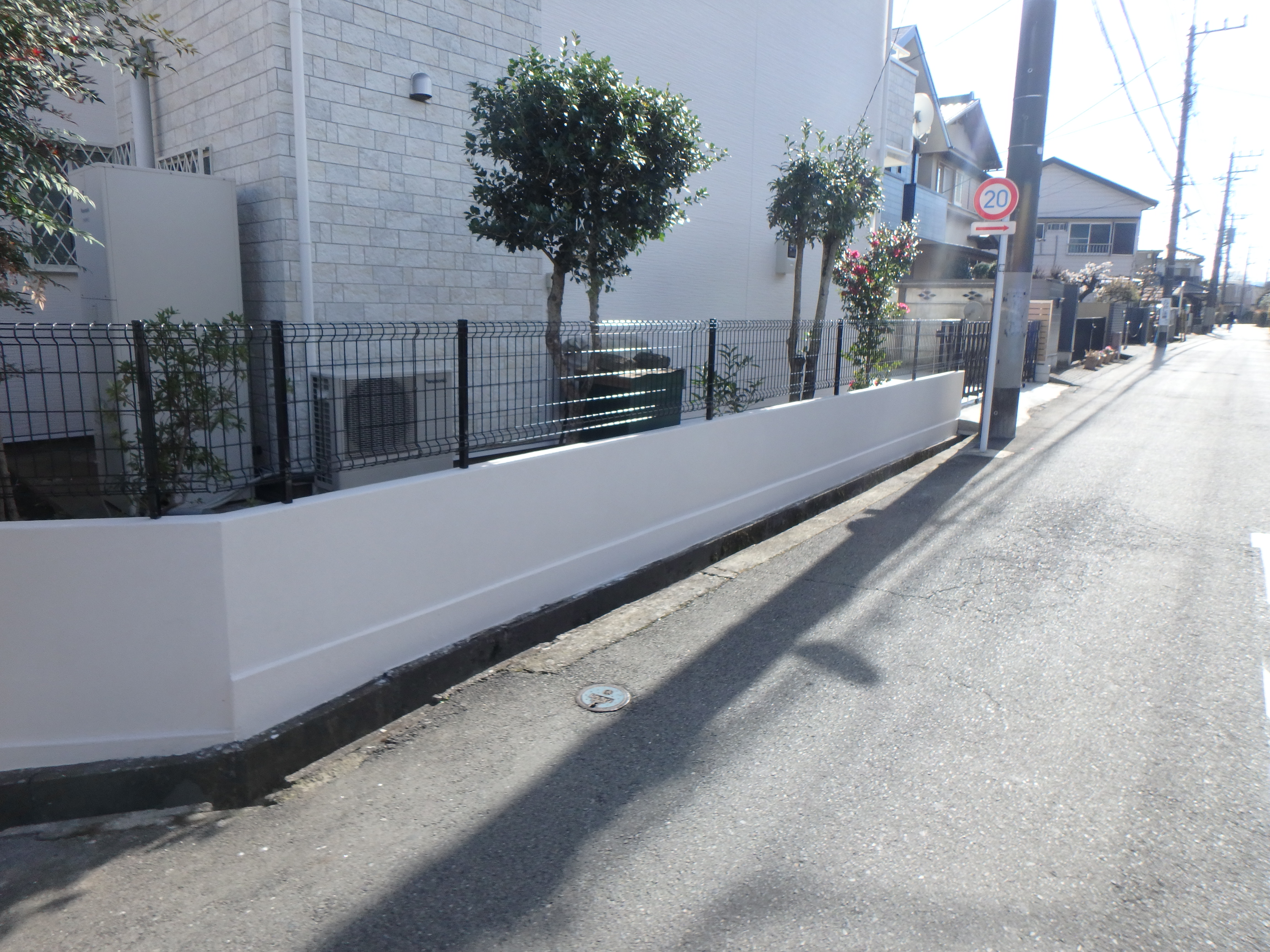 ブロックはむき出しでは無く、モルタルと専用塗料を塗ってお化粧しました。