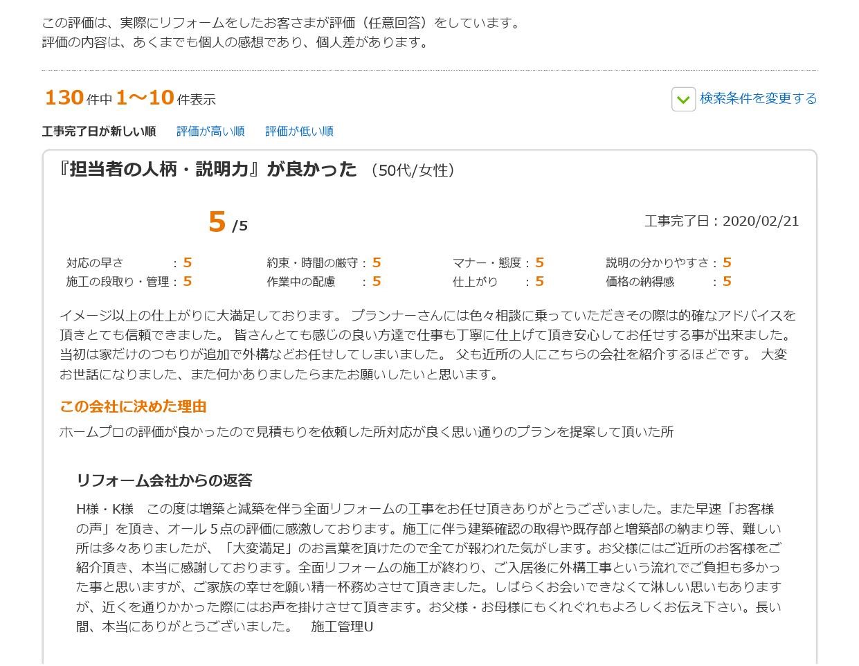 こちらのK様・H様は「ホームプロ」というリフォームサイトを通じて