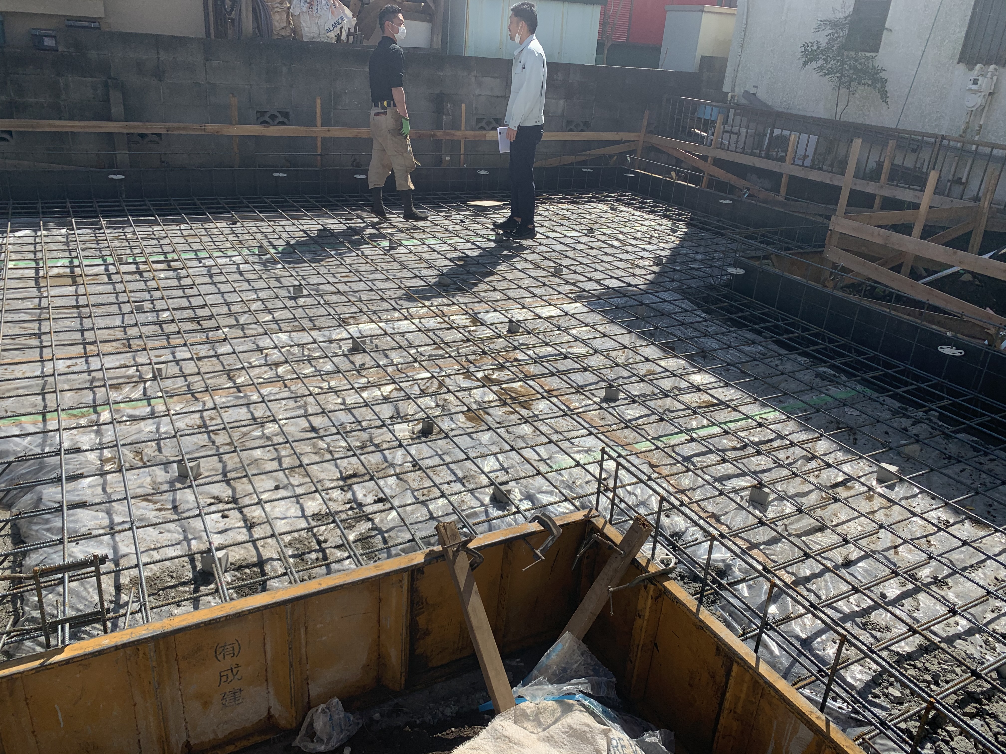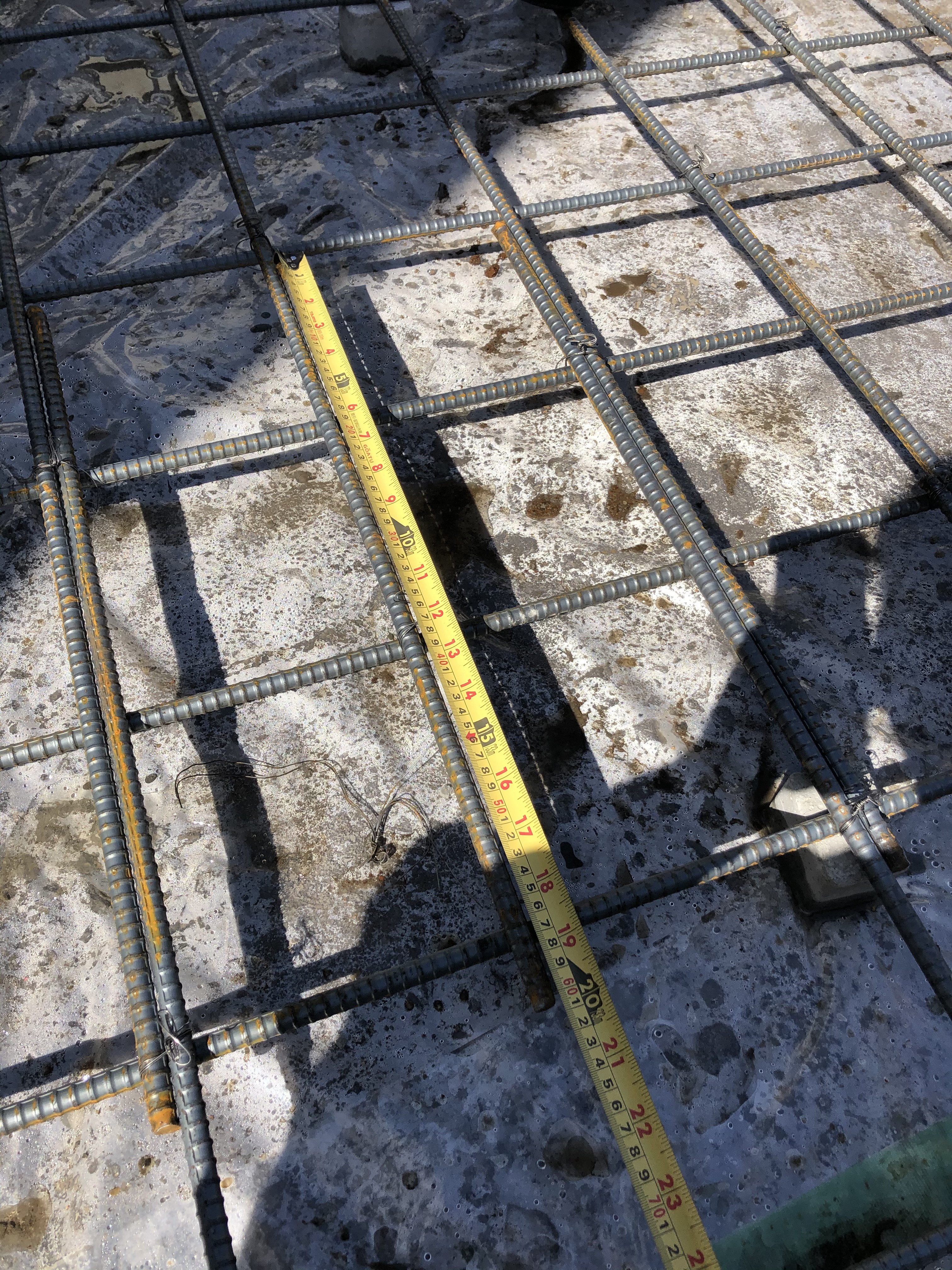 その後、基礎配筋のピッチ(間隔)や継手・定着長さを確認しています。