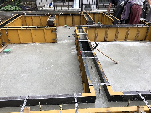 その後、内側に型枠を設置し、外周部や立ち上がり部分の作業に入ります。