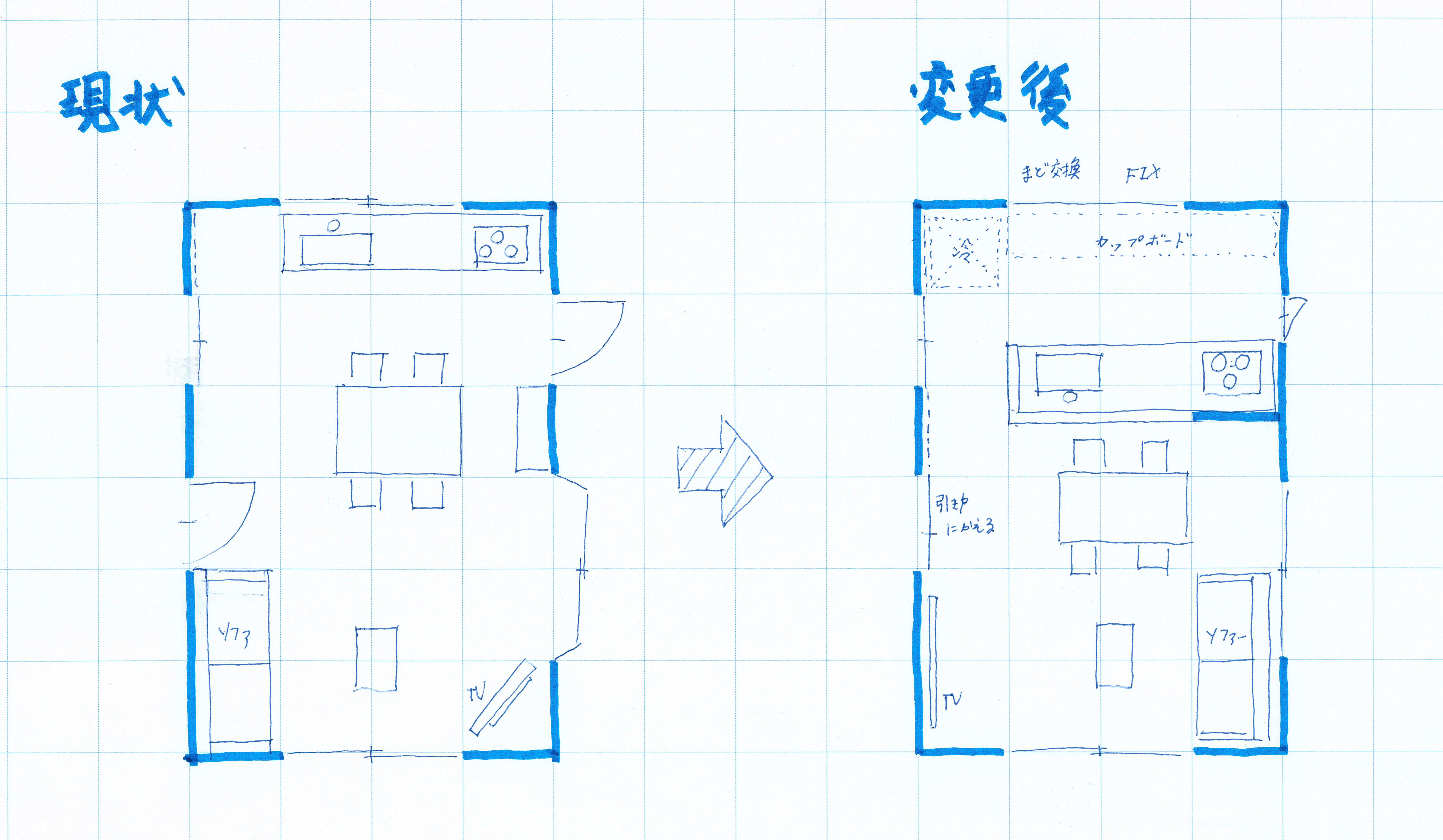 方眼紙と家具図形↓↓