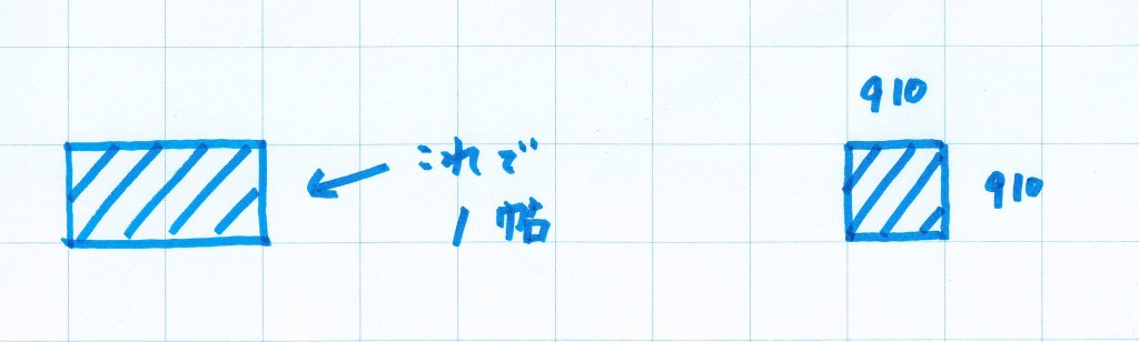 柱の芯寸法で910mm×1820mmで1帖となります。