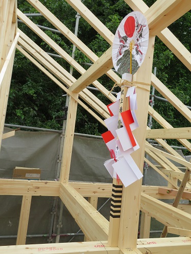 幣串や地鎮祭時に神主様から頂いた棟札も、しっかりと取り付けております