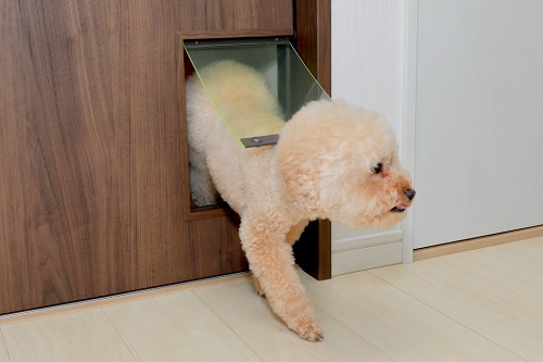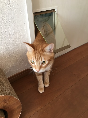 ペットドアからひょっこりと出てくる様子が可愛らしいですね