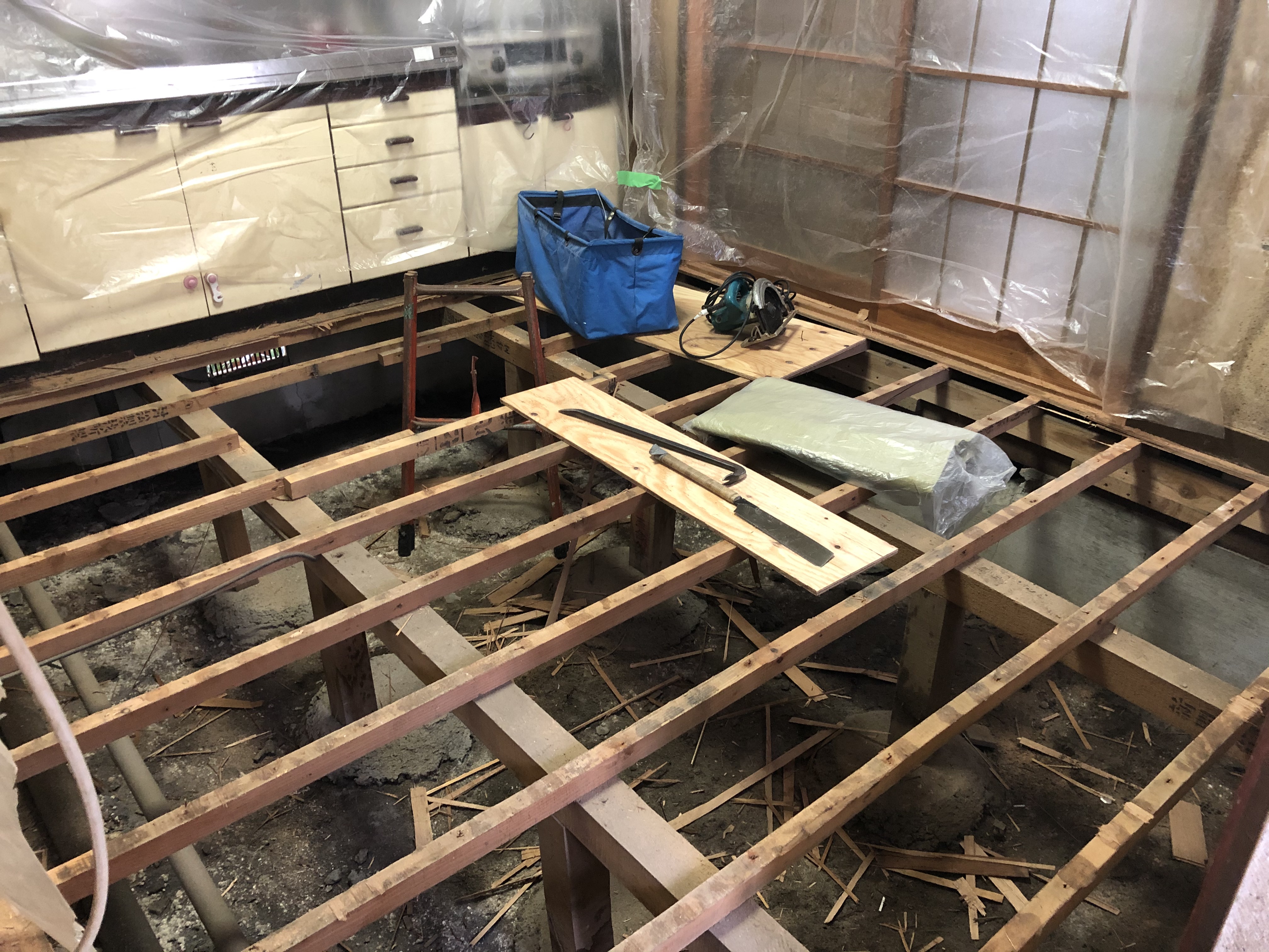 S様邸もフローリングを剥がすと築40年ですがしっかりとした根太が現れました。