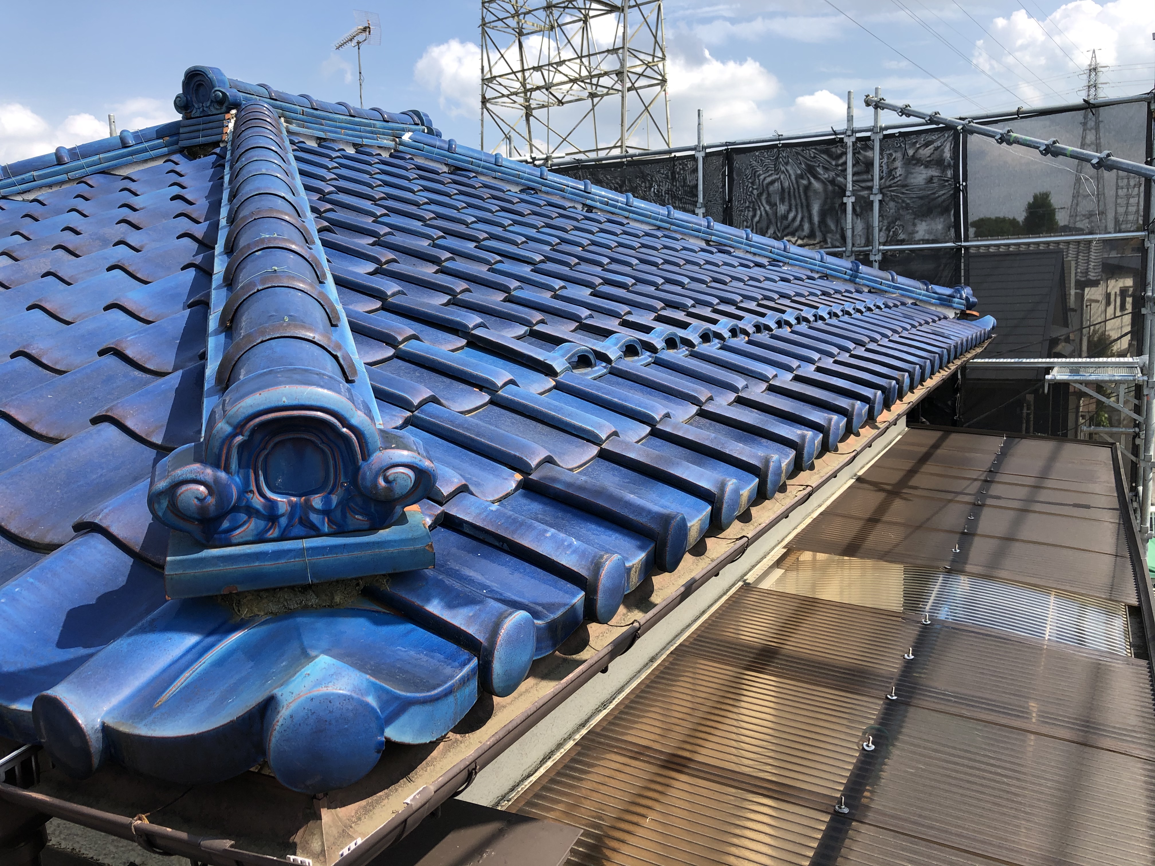 耐震性能アップの為に、重たい瓦屋根から軽いガルバリウム鋼板へ葺き替えました。