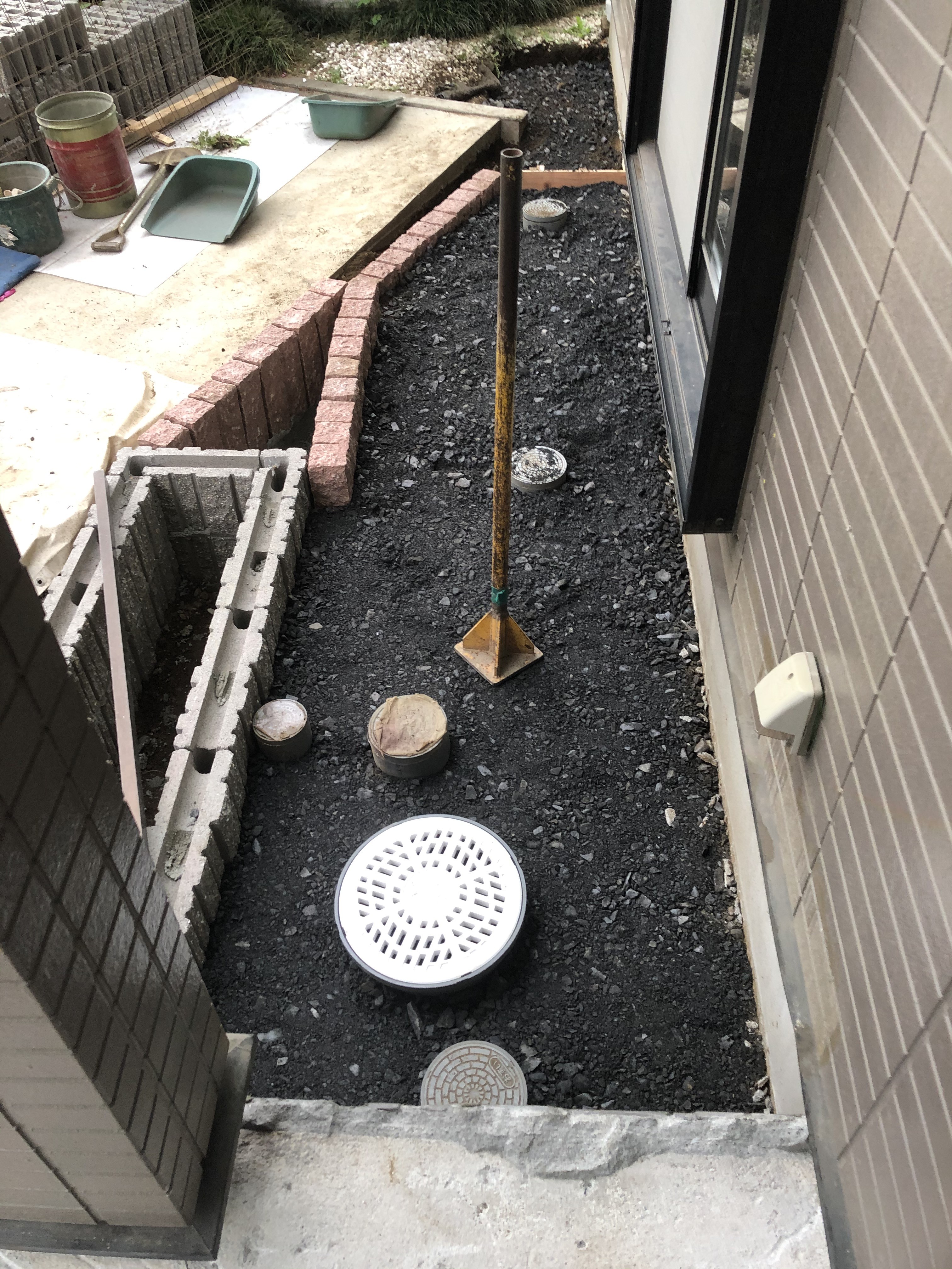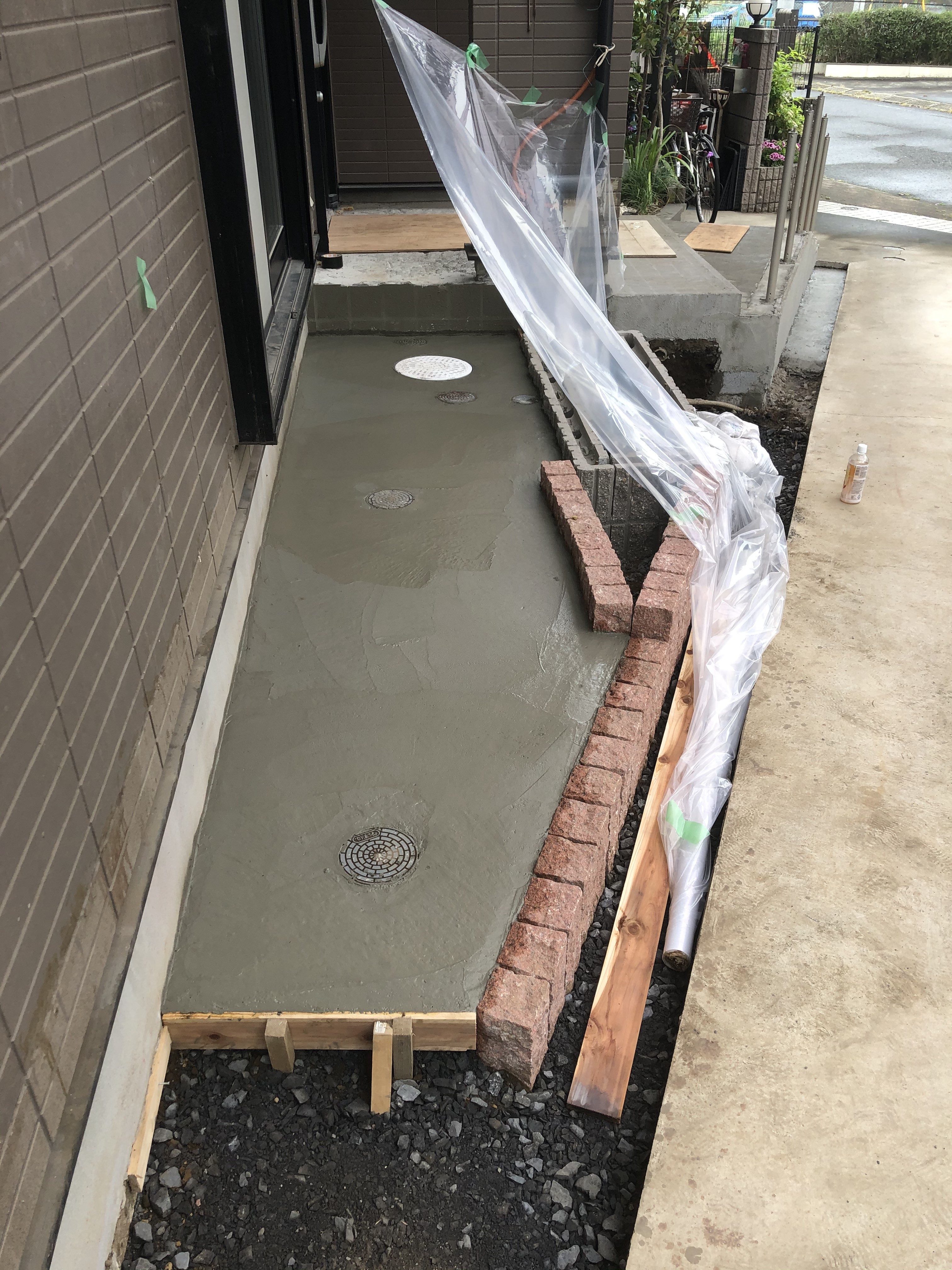 当初の計画では花壇の前は土間打ちにする予定でしたが