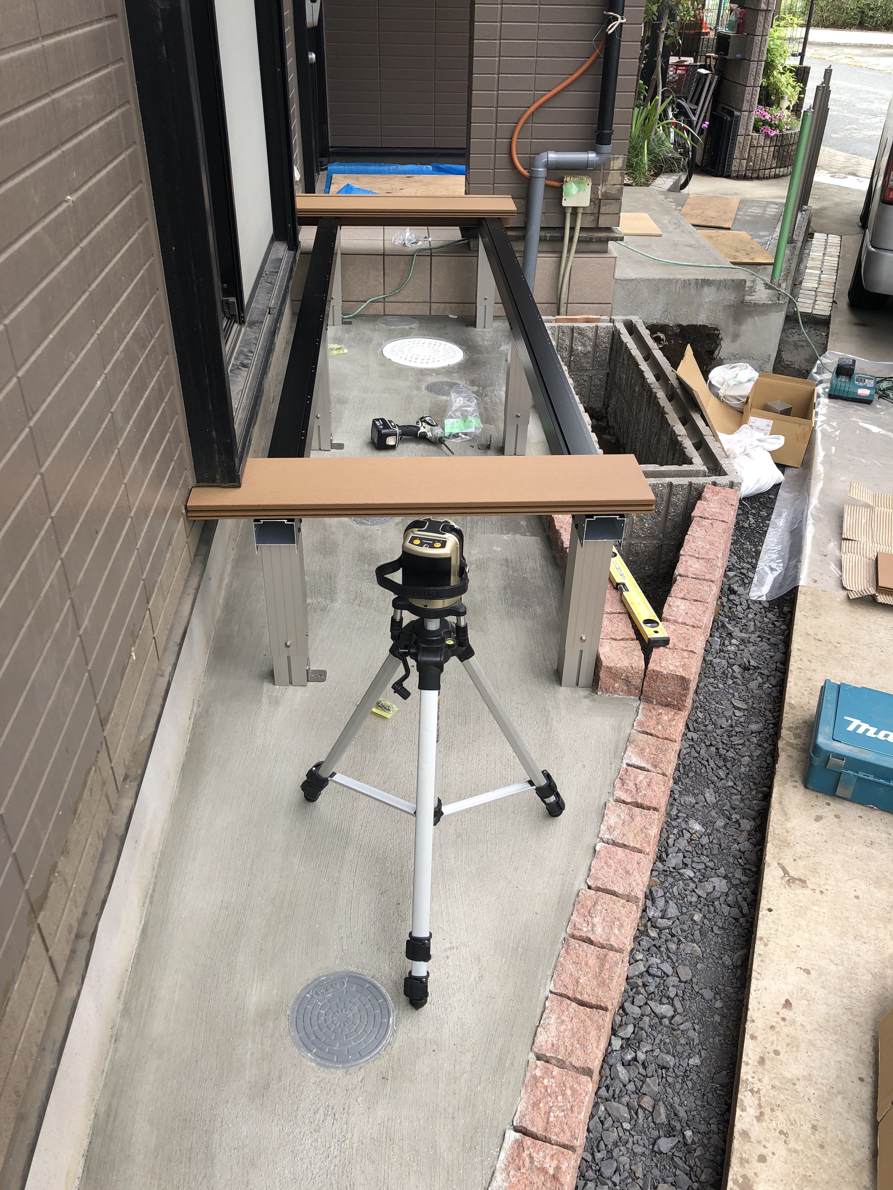 ウッドデッキ取り付けの様子