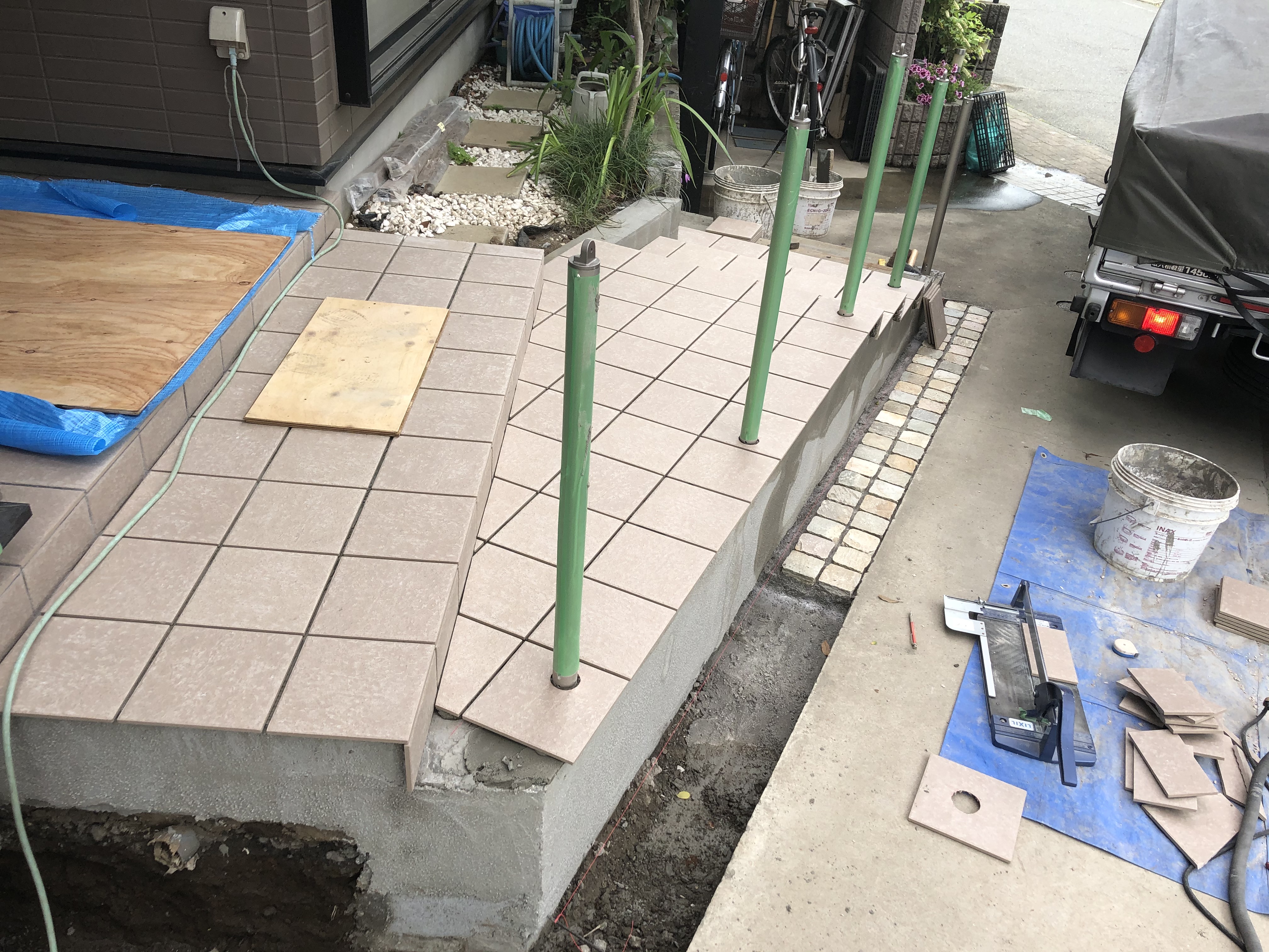 玄関前のアプローチを仕上げていきます 😎