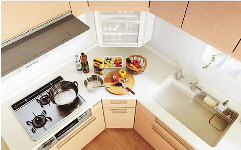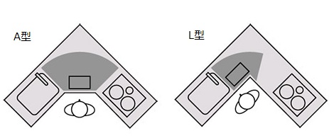 また、A型になっていることで、コーナー部からシンクやコンロへ楽に移動できます。