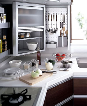 TOTOのA型キッチンは、コーナー上の収納も扇状です![]()