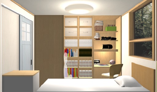 製作したのは、テレビボード、収納、お子様たちの勉強机・本棚・クローゼットです。