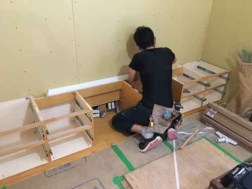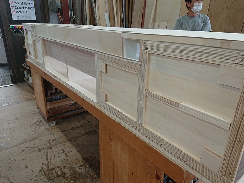 お施主様と寸法やデザイン、詳細の仕様を確定した後は、家具職人さんにバトンタッチです。