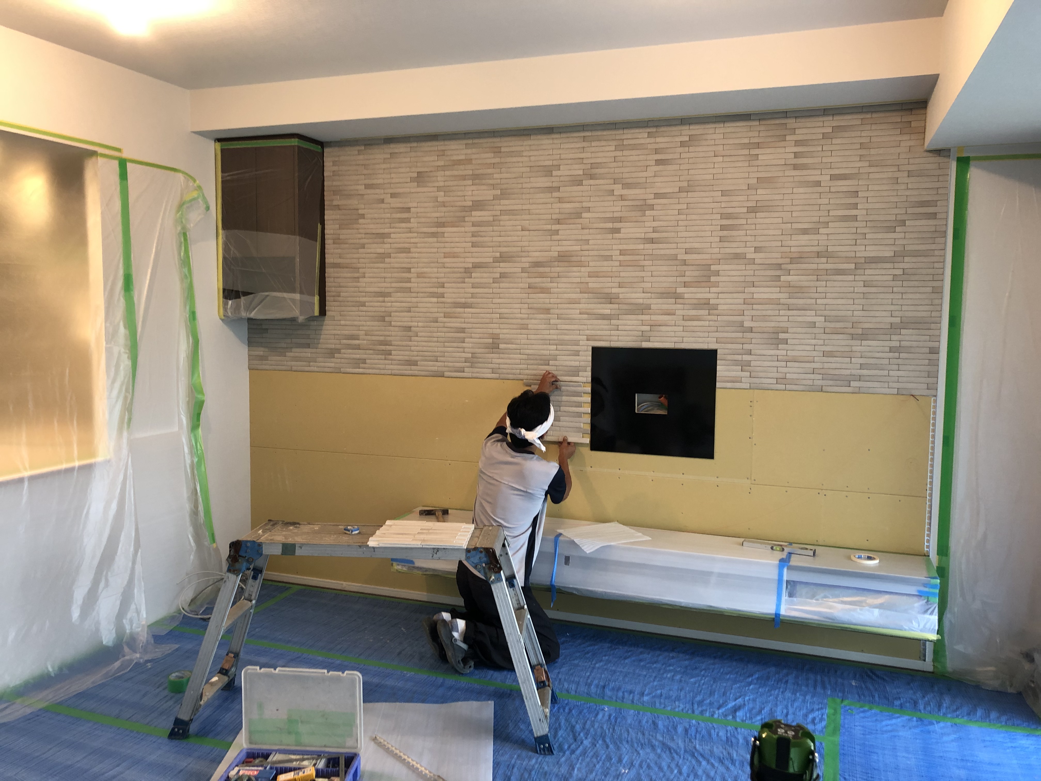 Y様が選ばれたタイルが壁面積とぴったりで、ほぼ加工無しというミラクルが起きました![]()