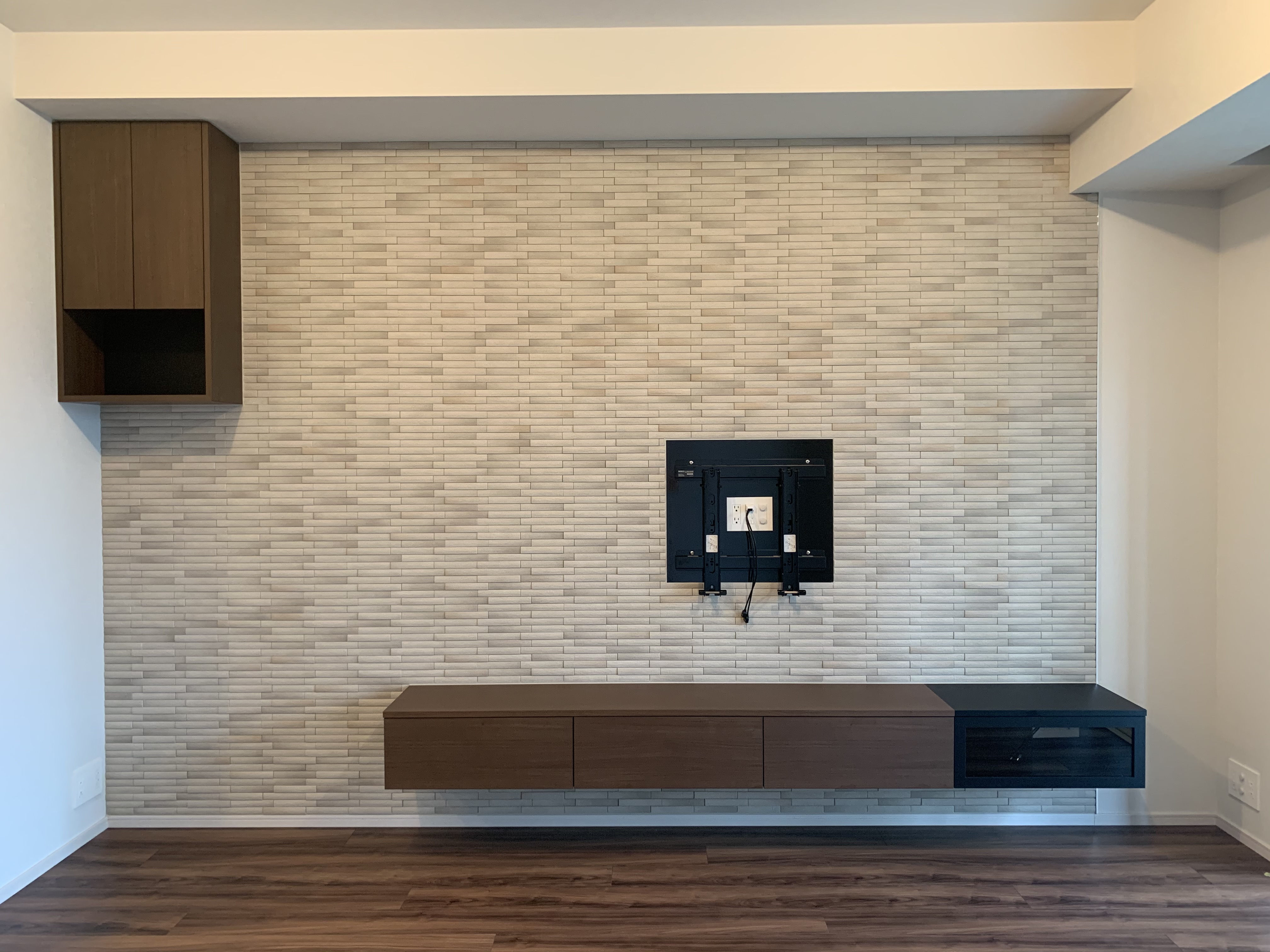 また、壁付のテレビ配線を壁の裏側に隠すように配線をやり替えました。