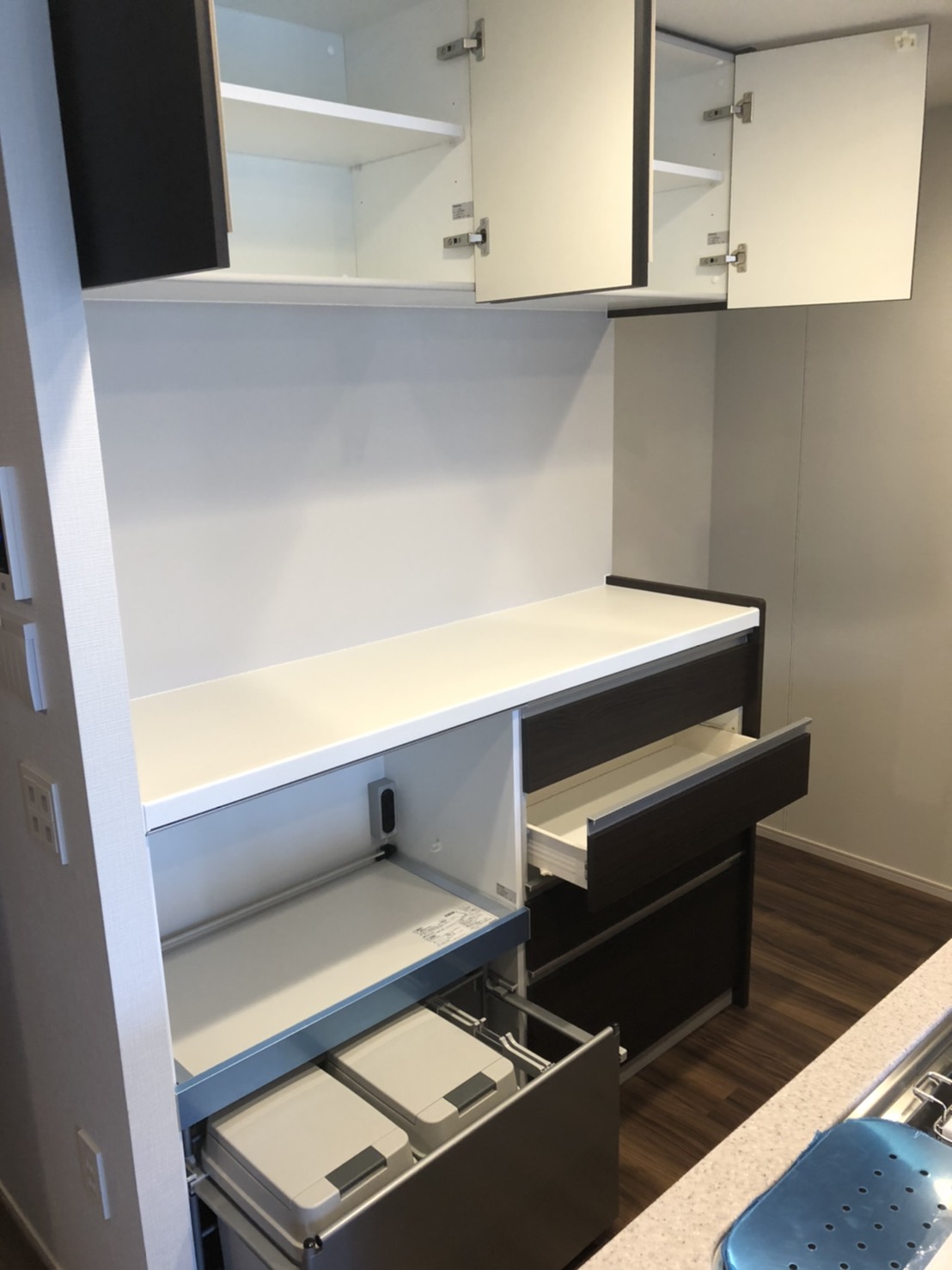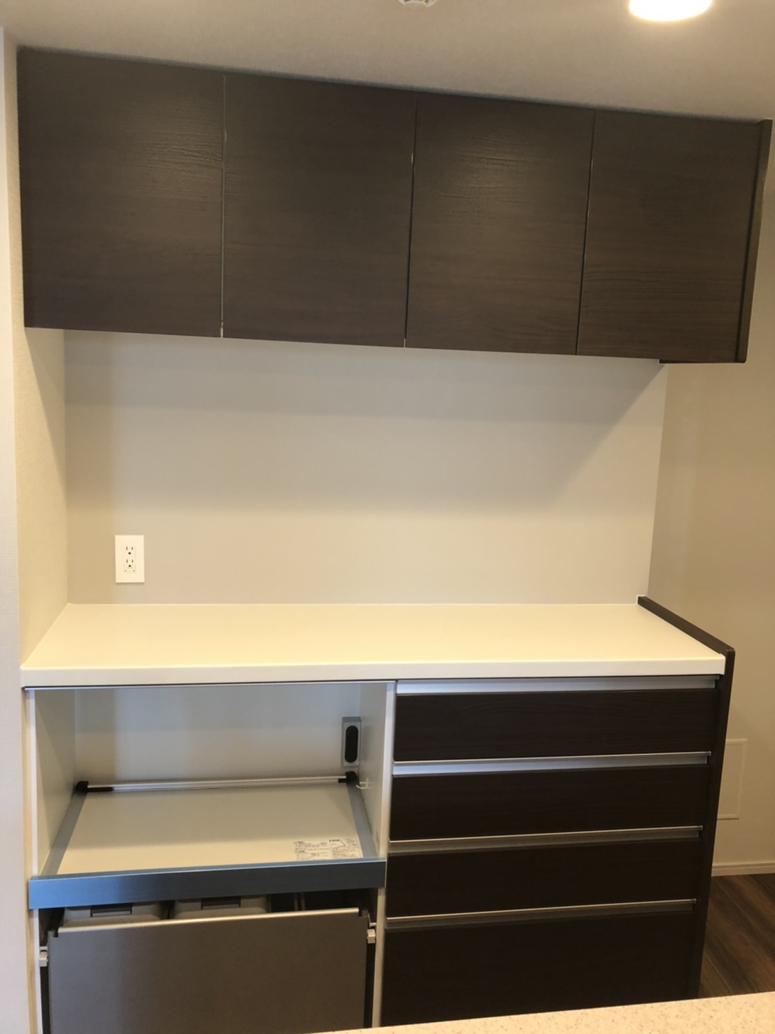 吊り戸棚と家電収納キャビネットを取付させて頂きました![]()