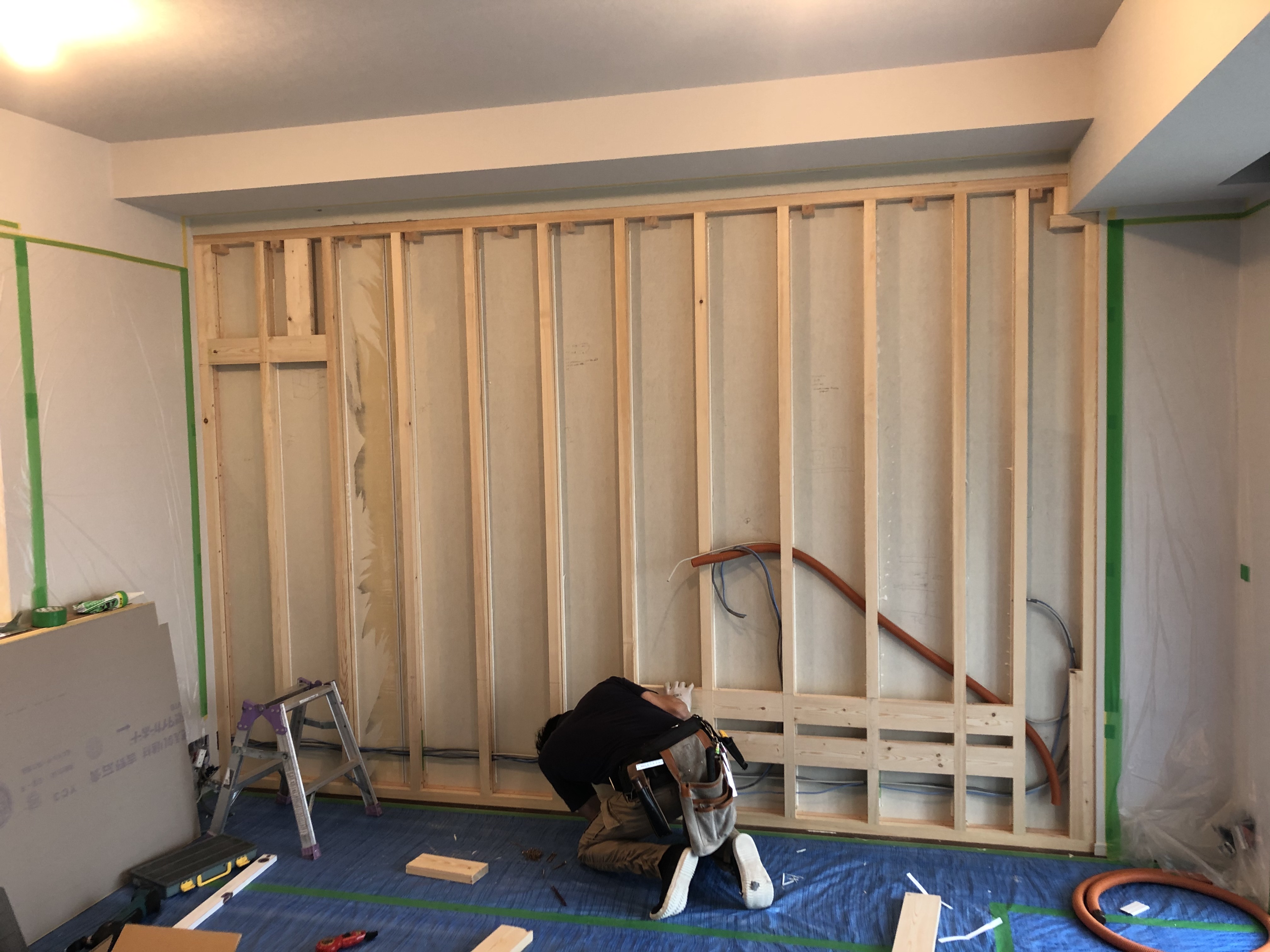 こちらは壁をふかすための下地を大工さんに作ってもらっています![]()