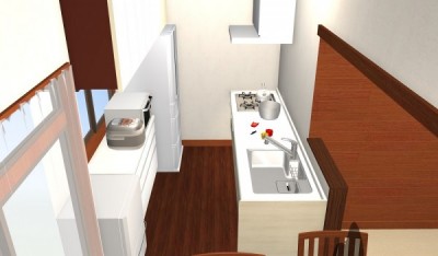 新しいキッチンはI型にして位置を移動し、リビングの様子が見えるようにいたします。