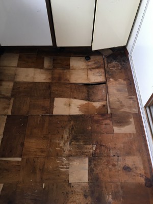 また、床のたわみや歪みが酷かったので、床の貼替も行います。