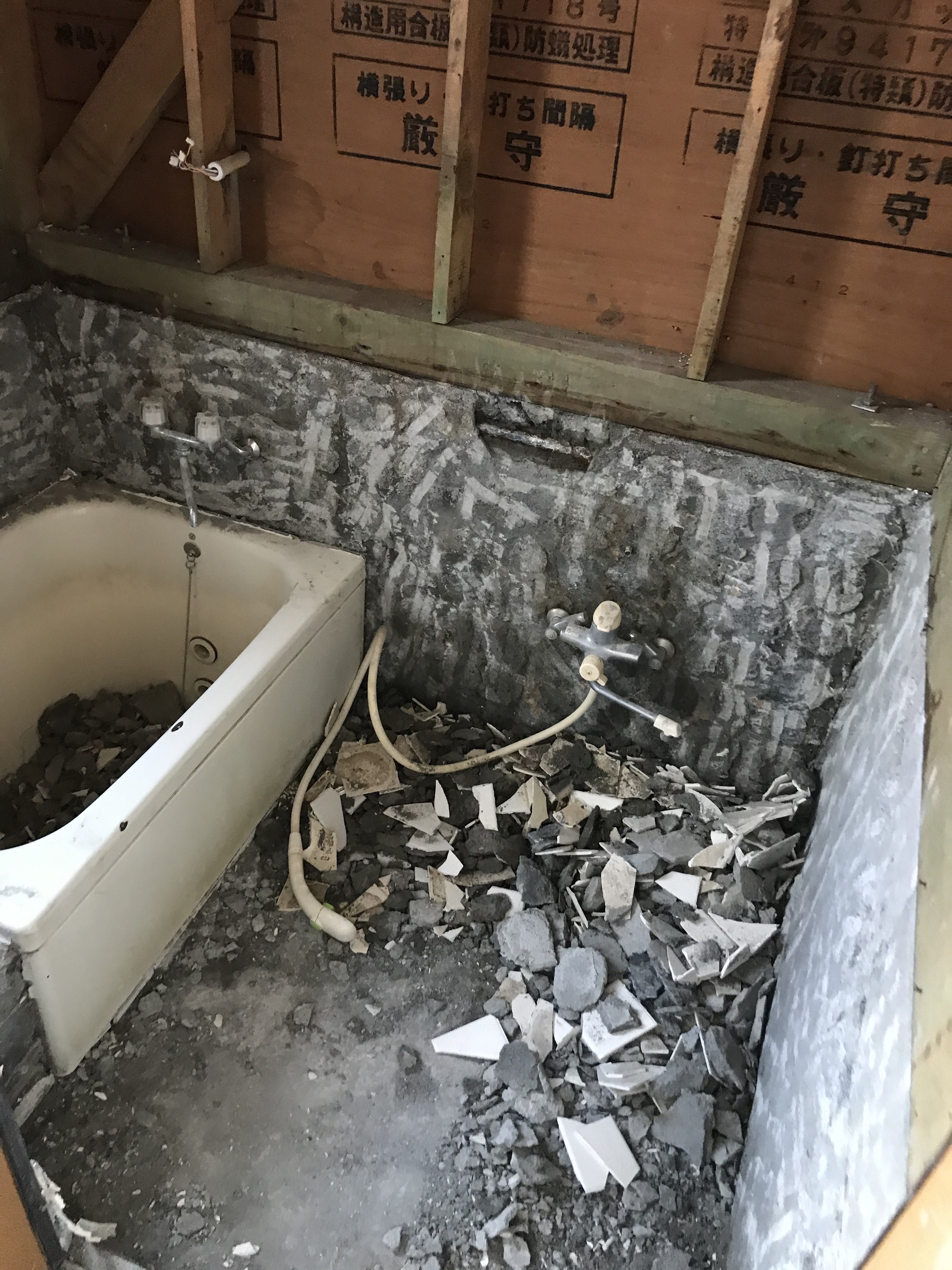 浴室もタイルの壁と床が解体・撤去されました。