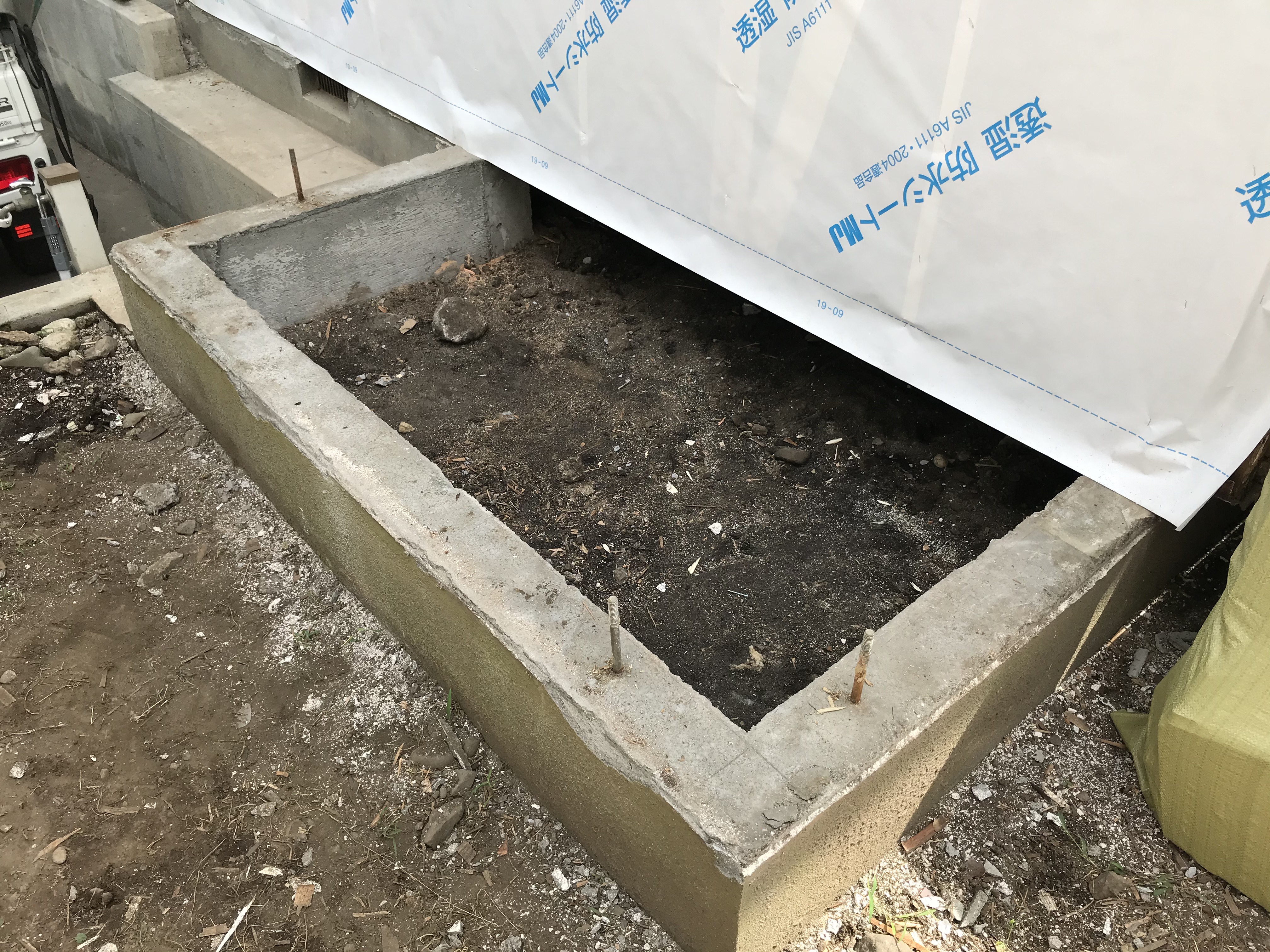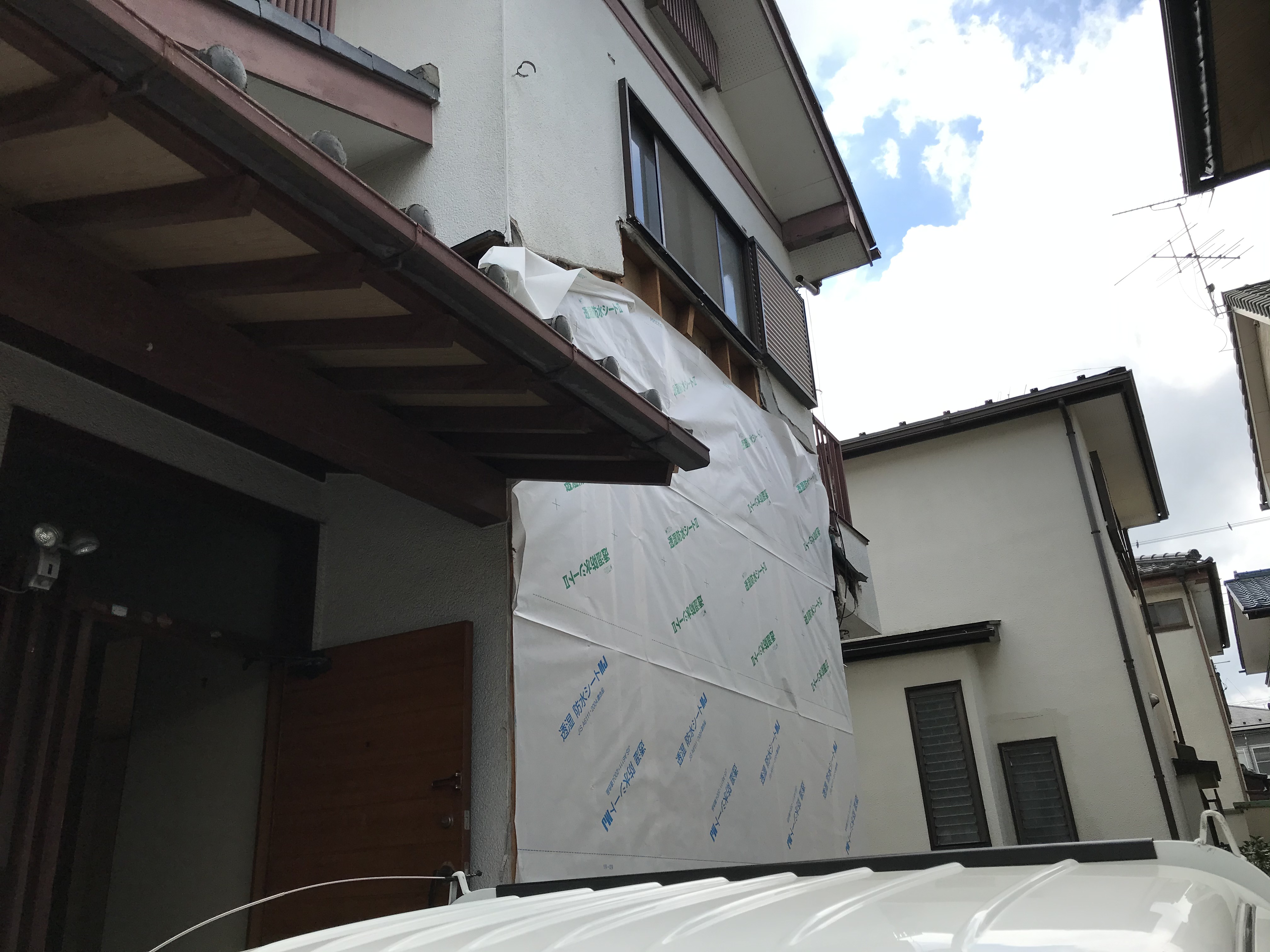 雨が入らないように合板を貼って、透湿防水シートで覆っています。