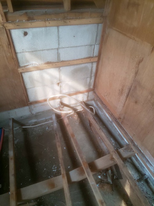 床の下地となる大引き・根太の本数が少なく、さらに根太を支える束がない状態でした![]()