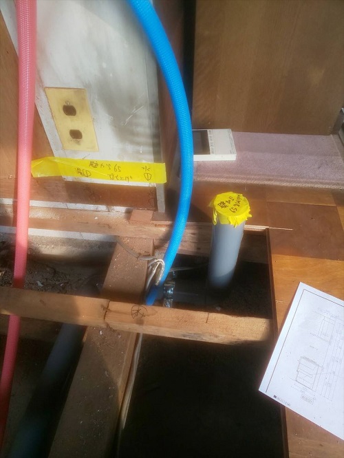 キッチンは既存位置から移動するので、給排水や電気工事も行います。