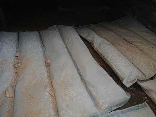 大工工事のタイミングで床下に湿気除去剤を敷いております。