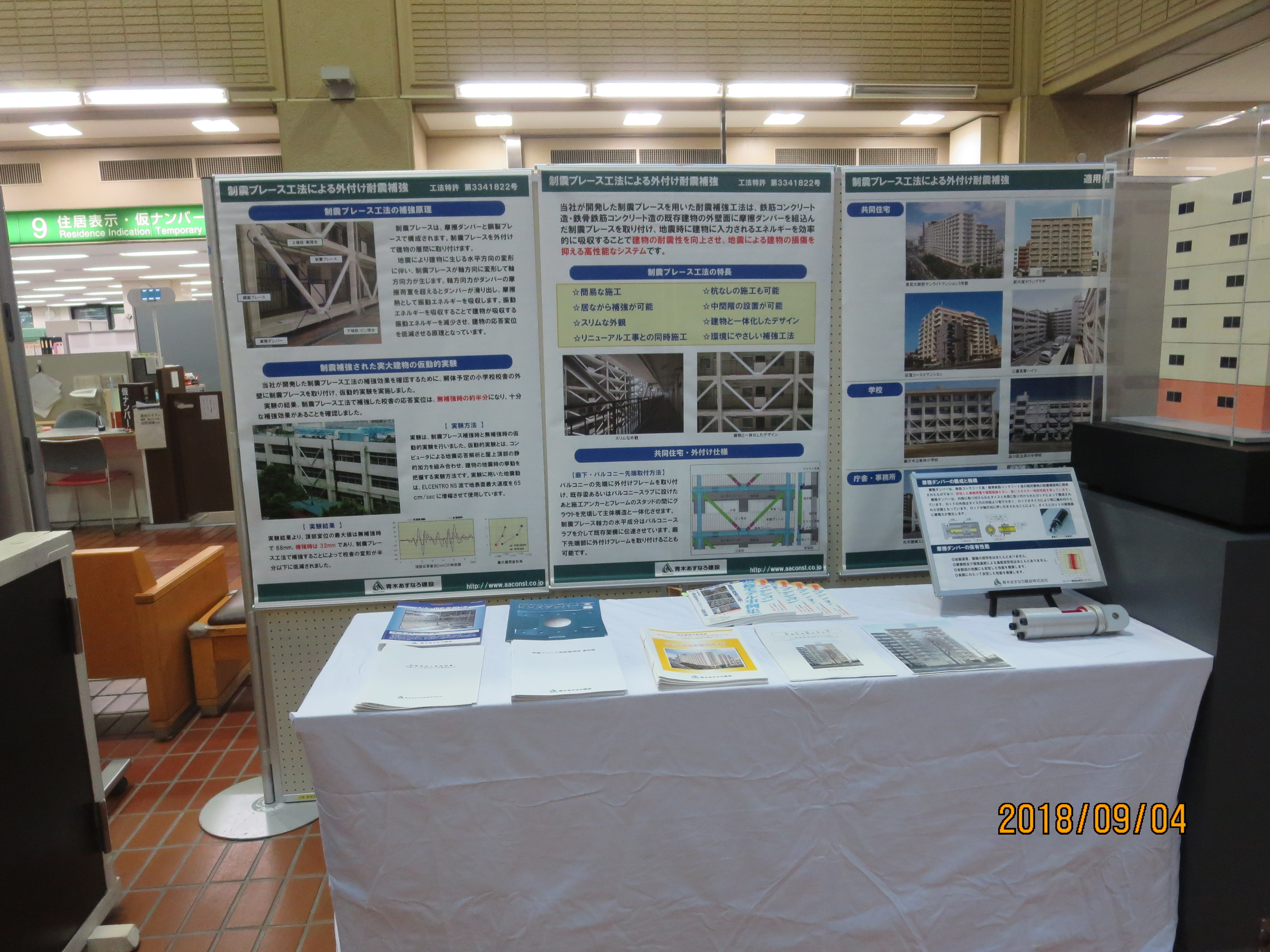 相談コーナーのほかにも、耐震改修の事例パネルの展示や、耐震補強に関する新商品なども