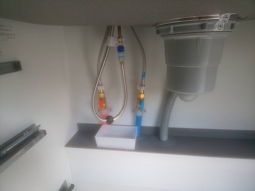キッチンの位置移動がありますので、給排水の配管、ガス配管、電気配線は、キッチン設置前に行っております。