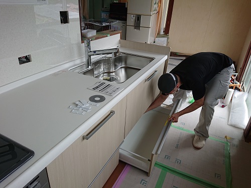キッチン設置中の様子です。
