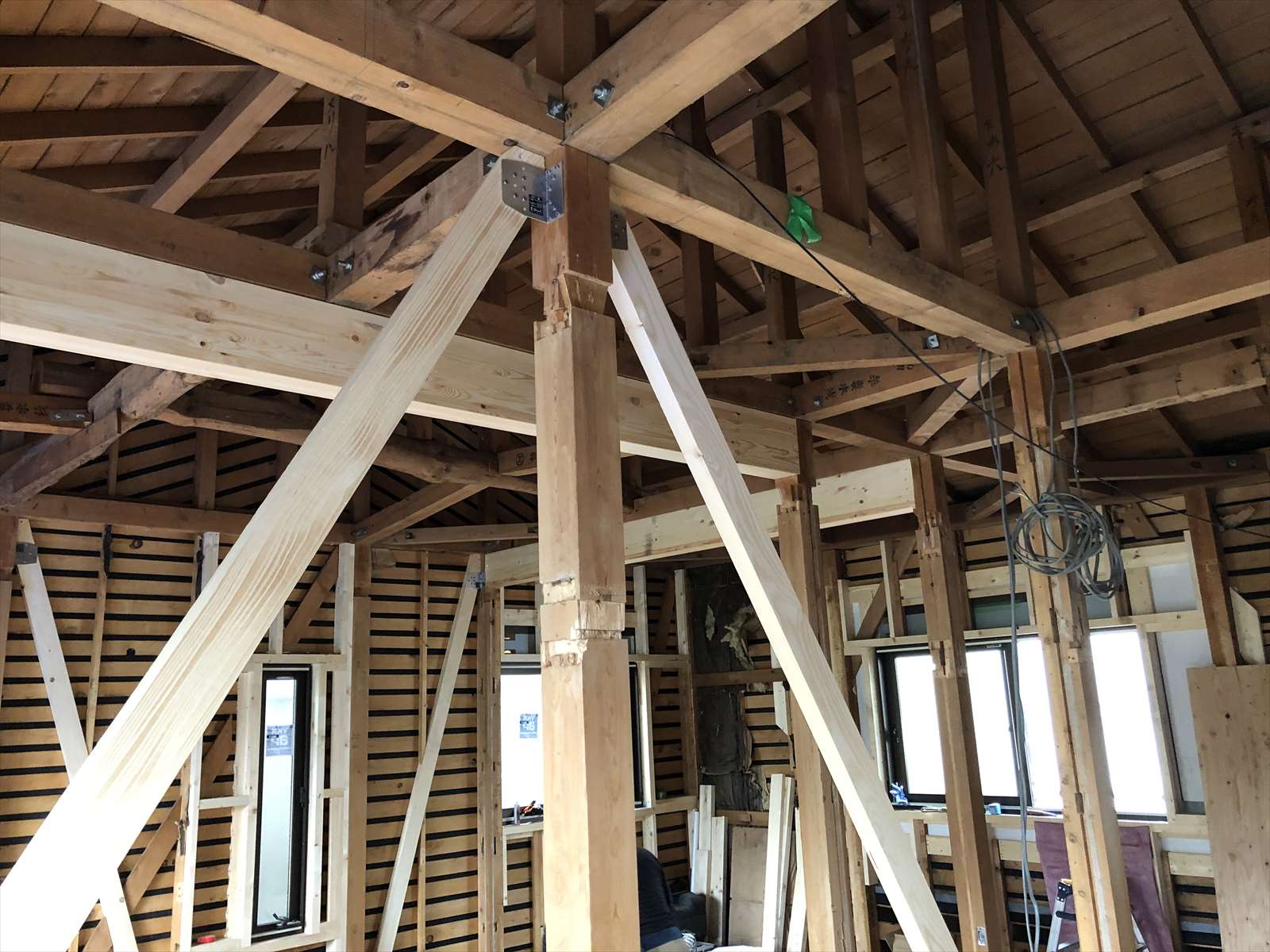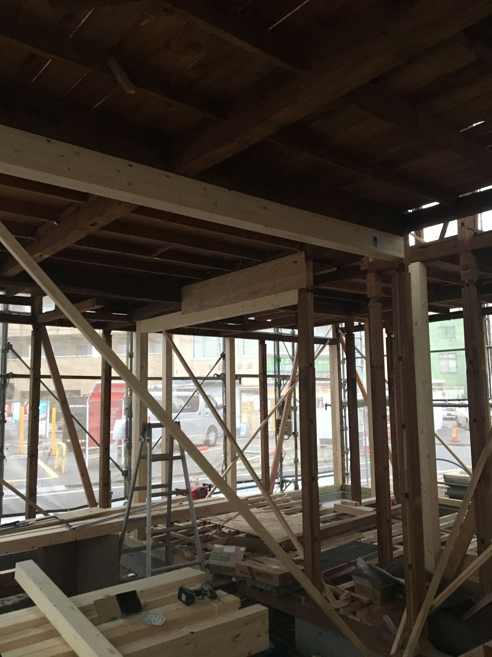 必要な所に新しい柱や梁、筋交いを入れて行きます。