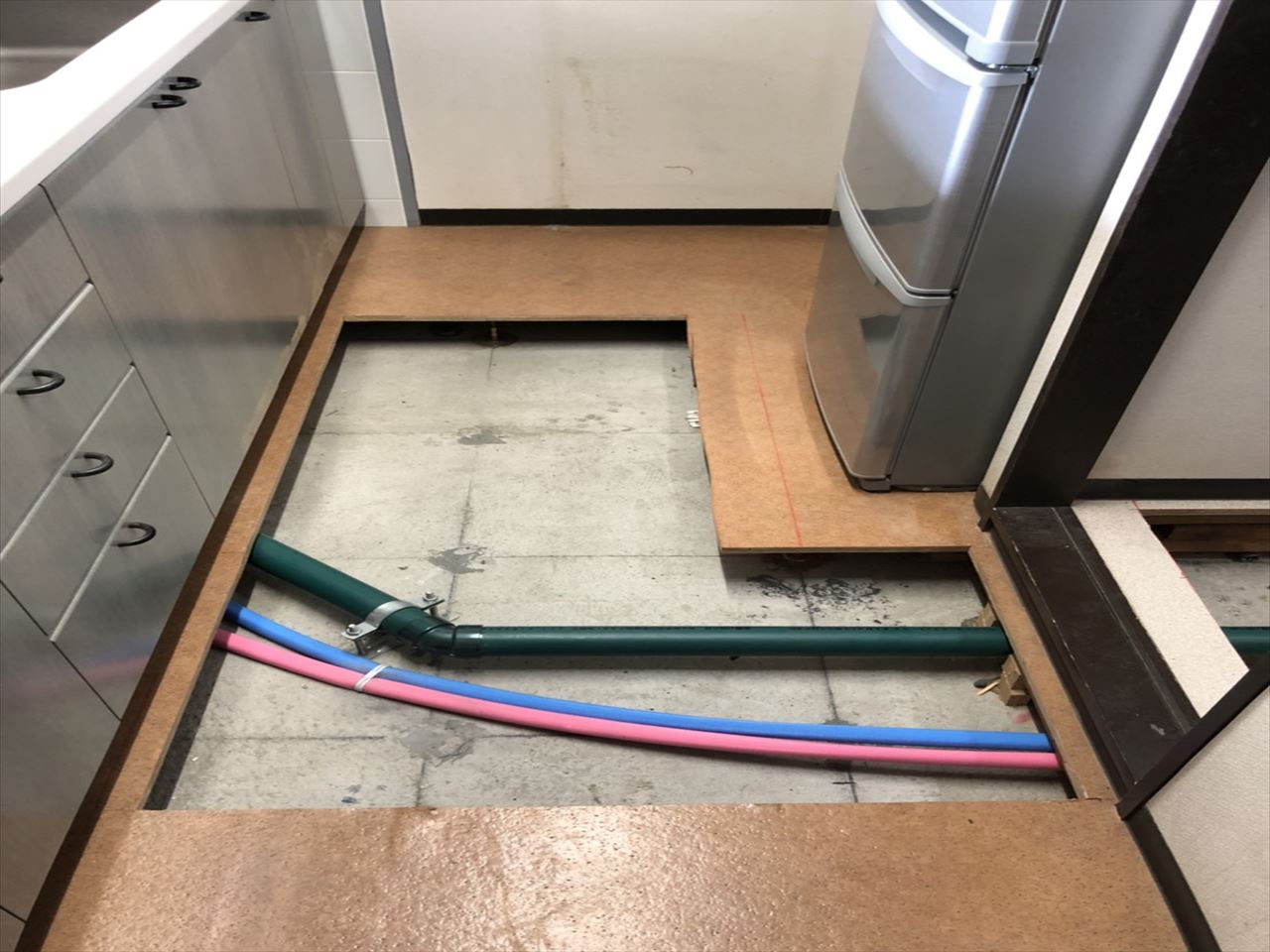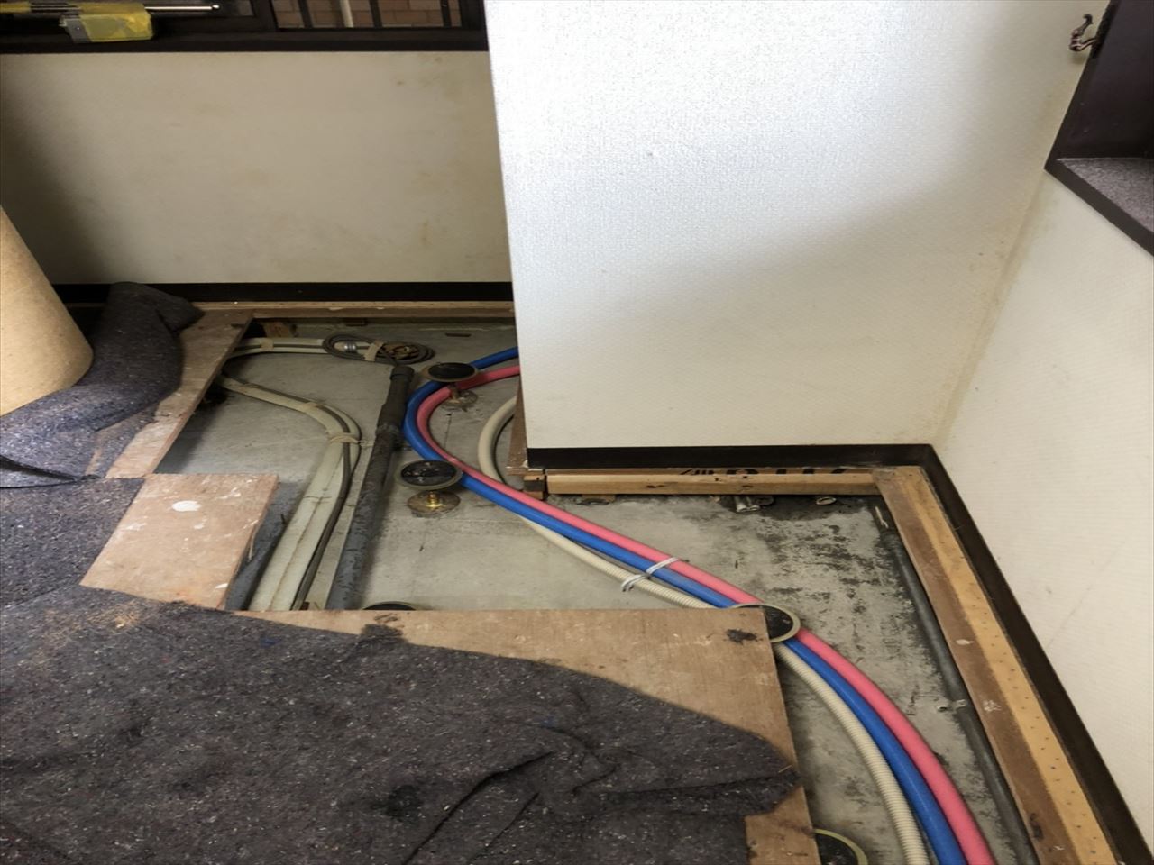 キッチンの給排水管も交換しました。(施工前の写真)