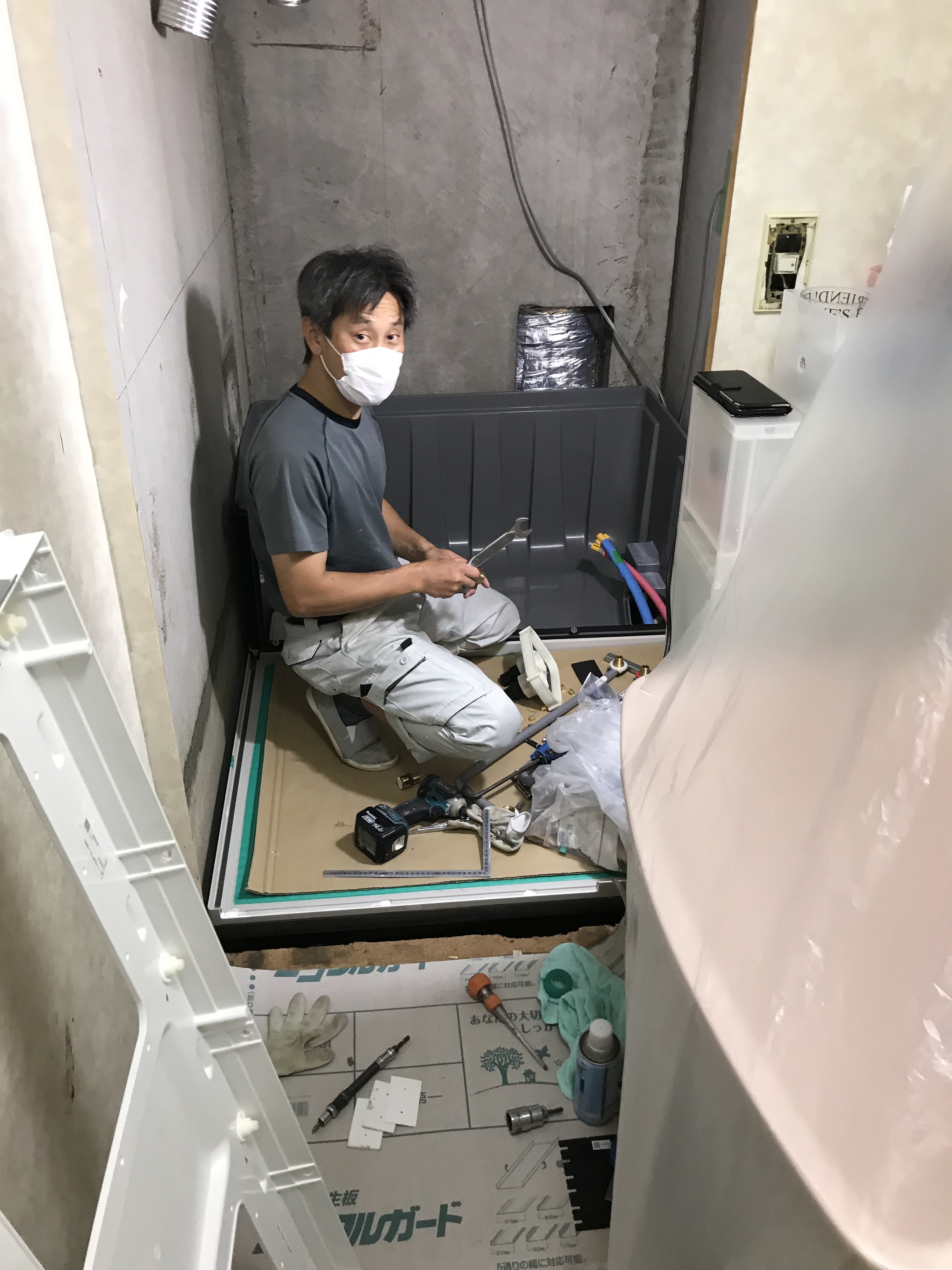 Kマンションは給湯器が浴室の中に付いているため、外釜にする工事を以前も行いました。