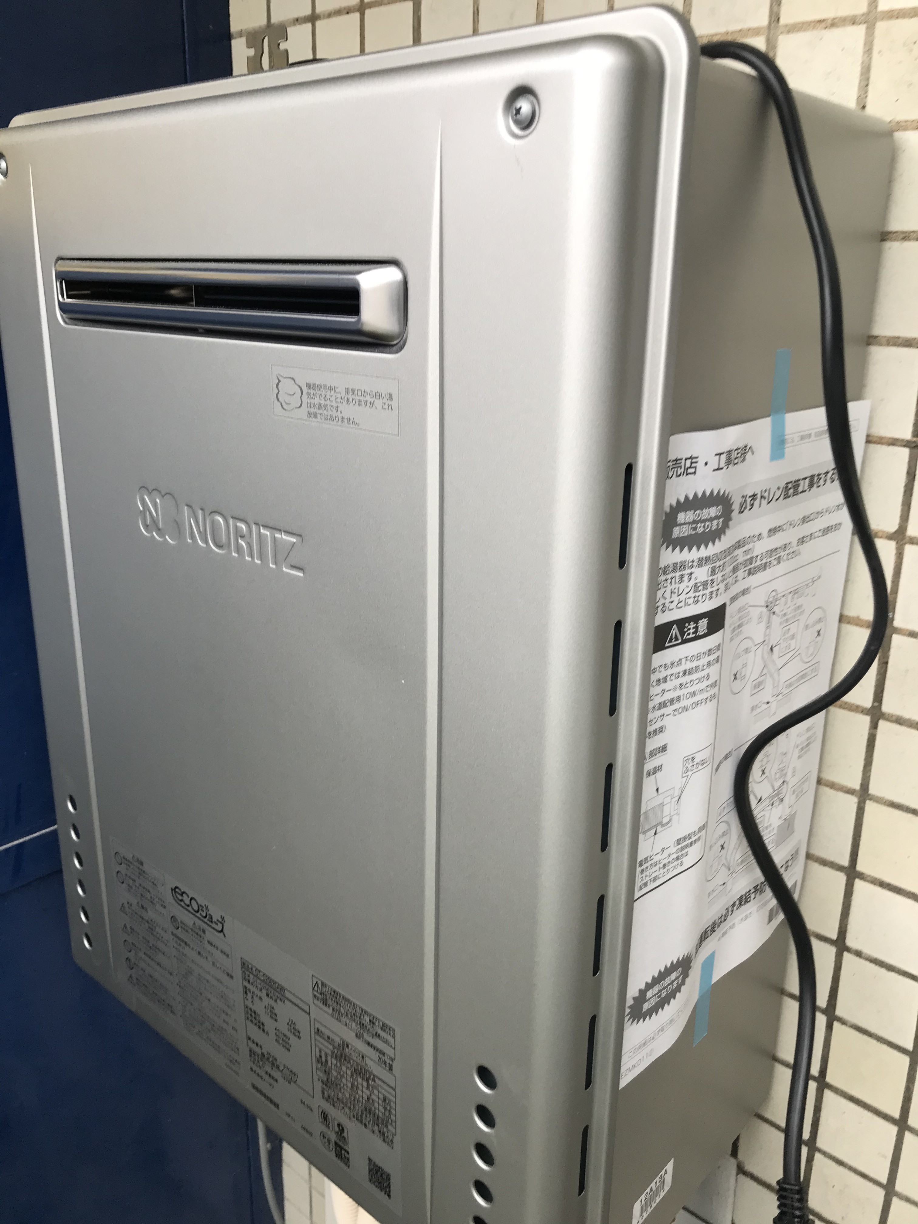 給湯器をエコジョーズに交換し、外壁に設置しました。