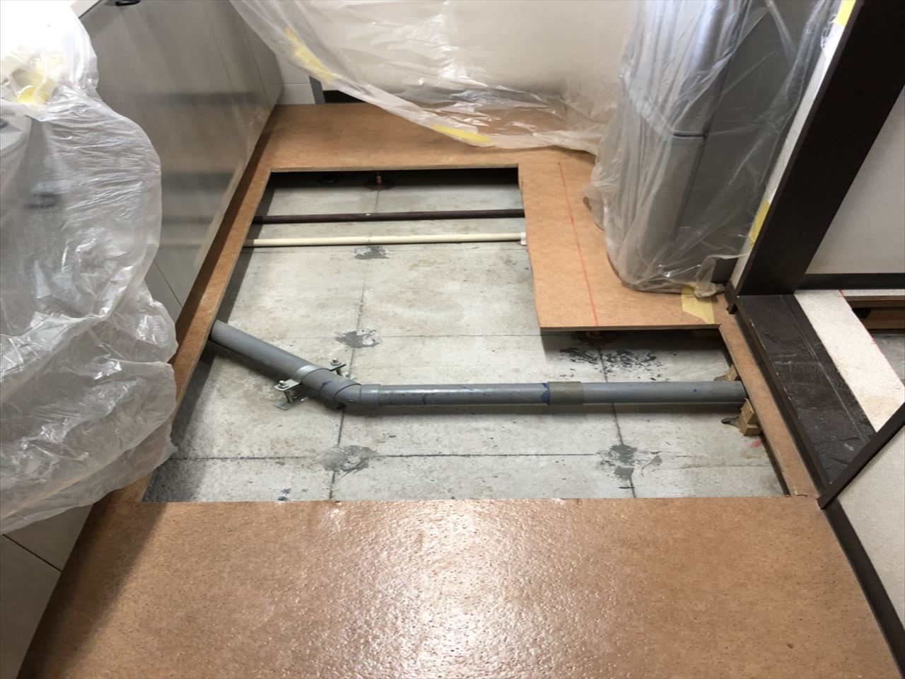内装が終わった状態ですが、実は床を剥がして水廻りの配管をやり替えています。