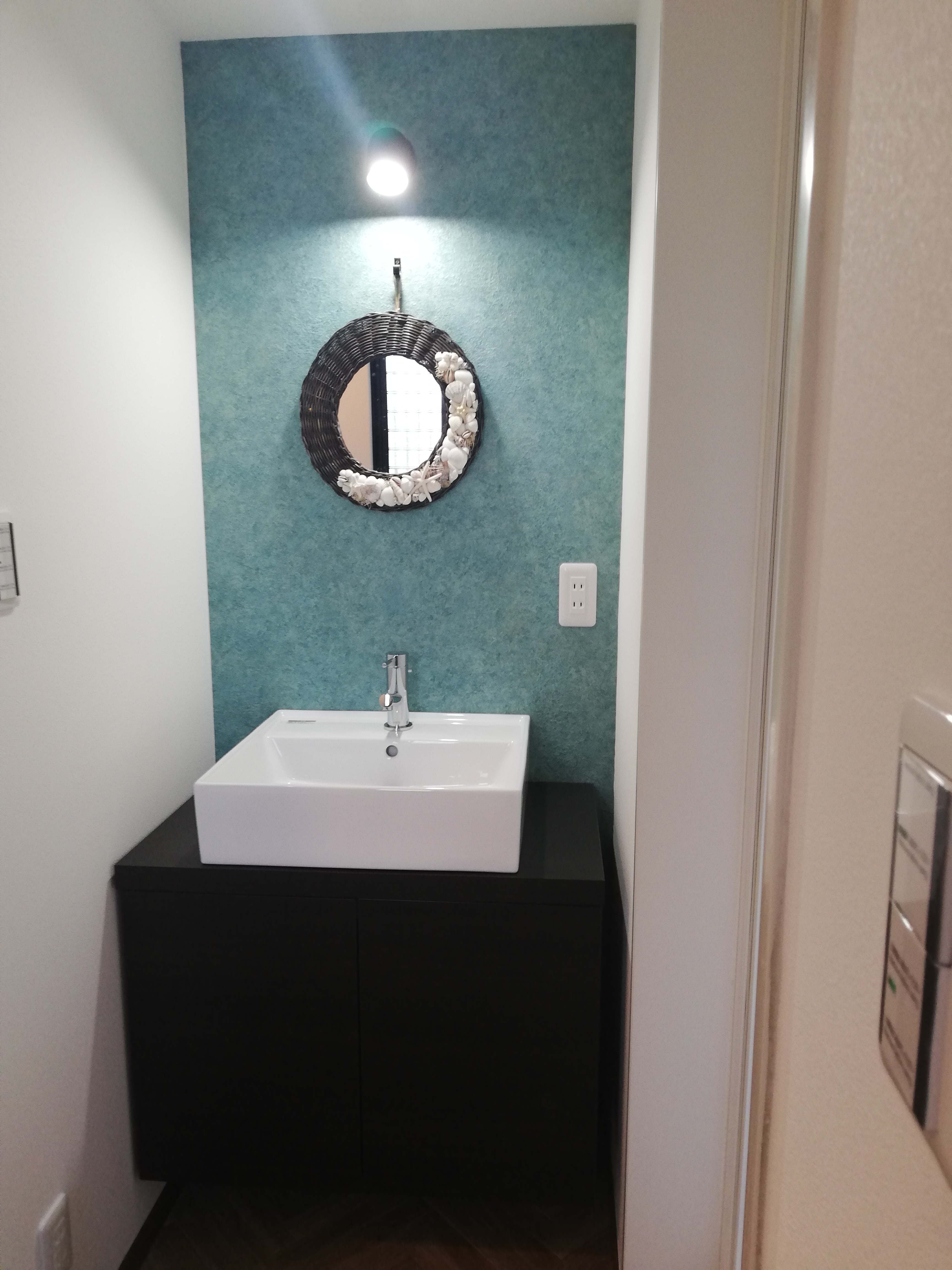 壁一面のアクセントクロスがとても綺麗で、スタイリッシュになりました![]()