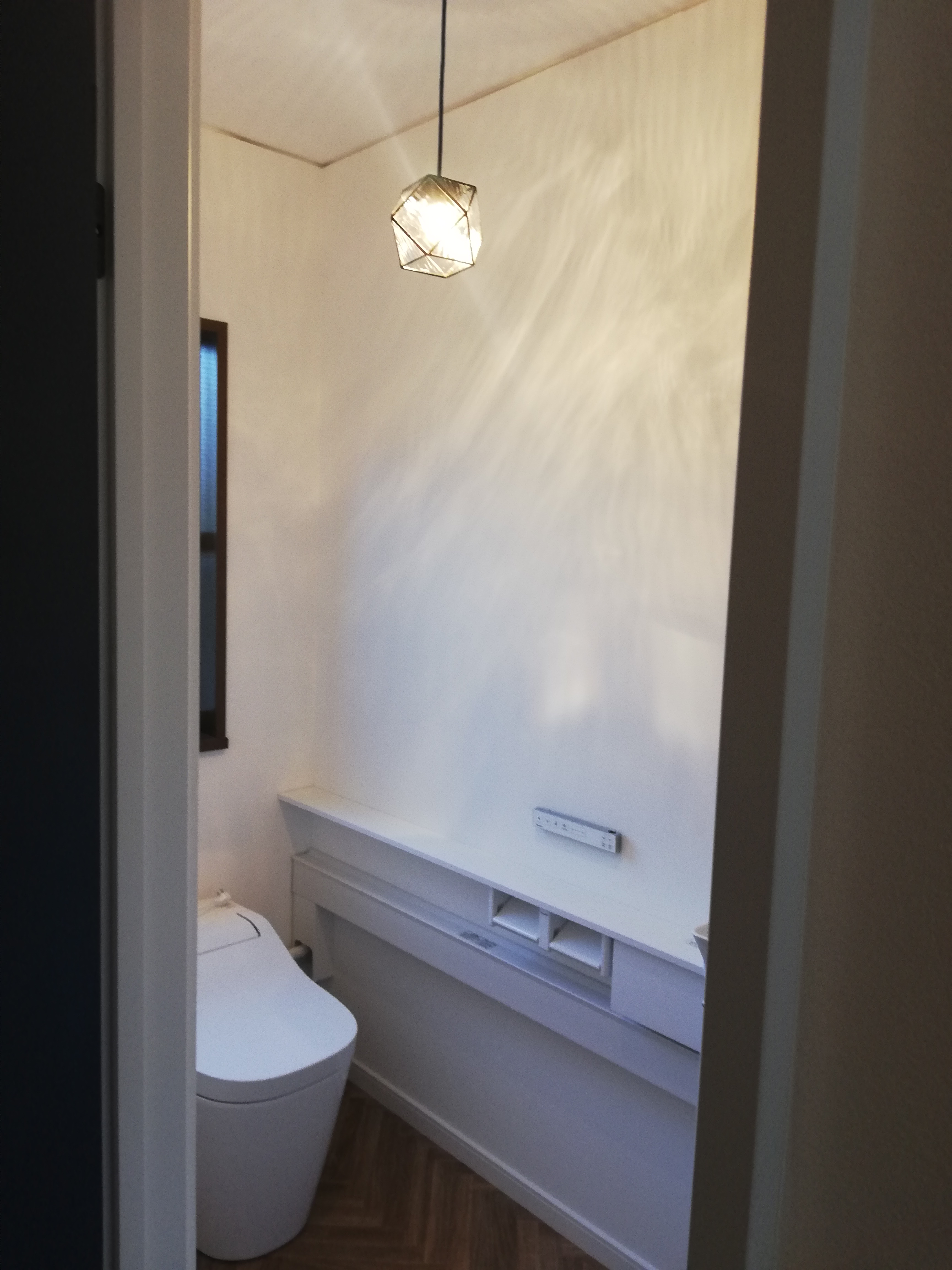 トイレはスペースを広げ、パナソニックの「アラウーノ」と手洗いカウンターを設置しました。